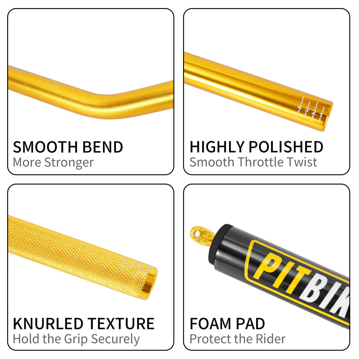 Motorcycle Handlebars 7/8 Inch,RUTU Upgraded Universal Dirt Bike Handle Bar with Crossbar Pad Low-Rise Pit Bike Handlebar for Motocross ATV Quad - Golden