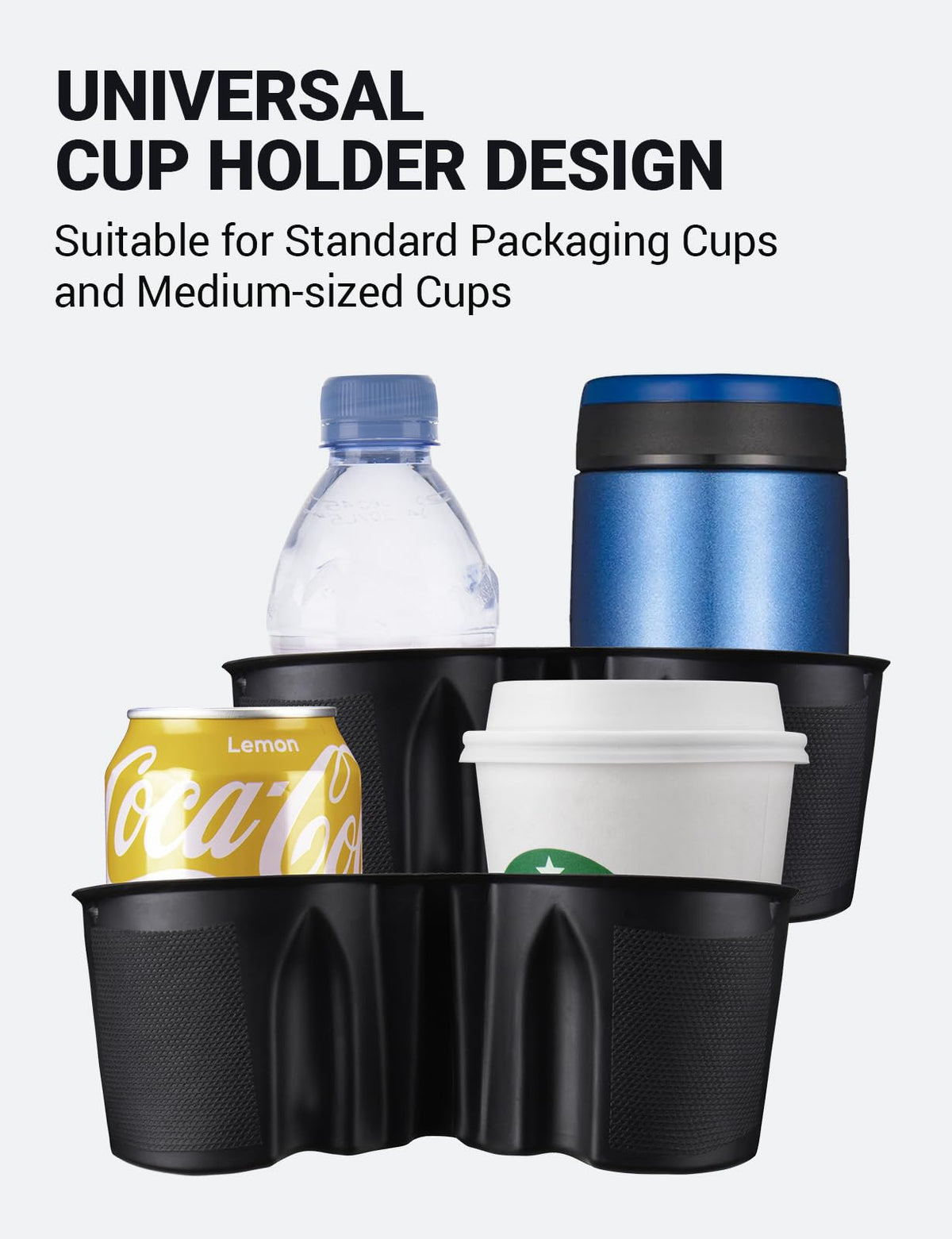 3. Universal cup holder design Suitable for standard packaging cups, medium-sized cups such as water cups, drink bottles, coffee cups, etc.