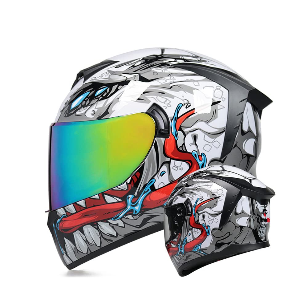 MotuoMr Unisex-Adult Full Face Motorcycle Helmet DOT Approved Motorbike Moped Street Bike Racing Crash Helmet with Graphic (Colo