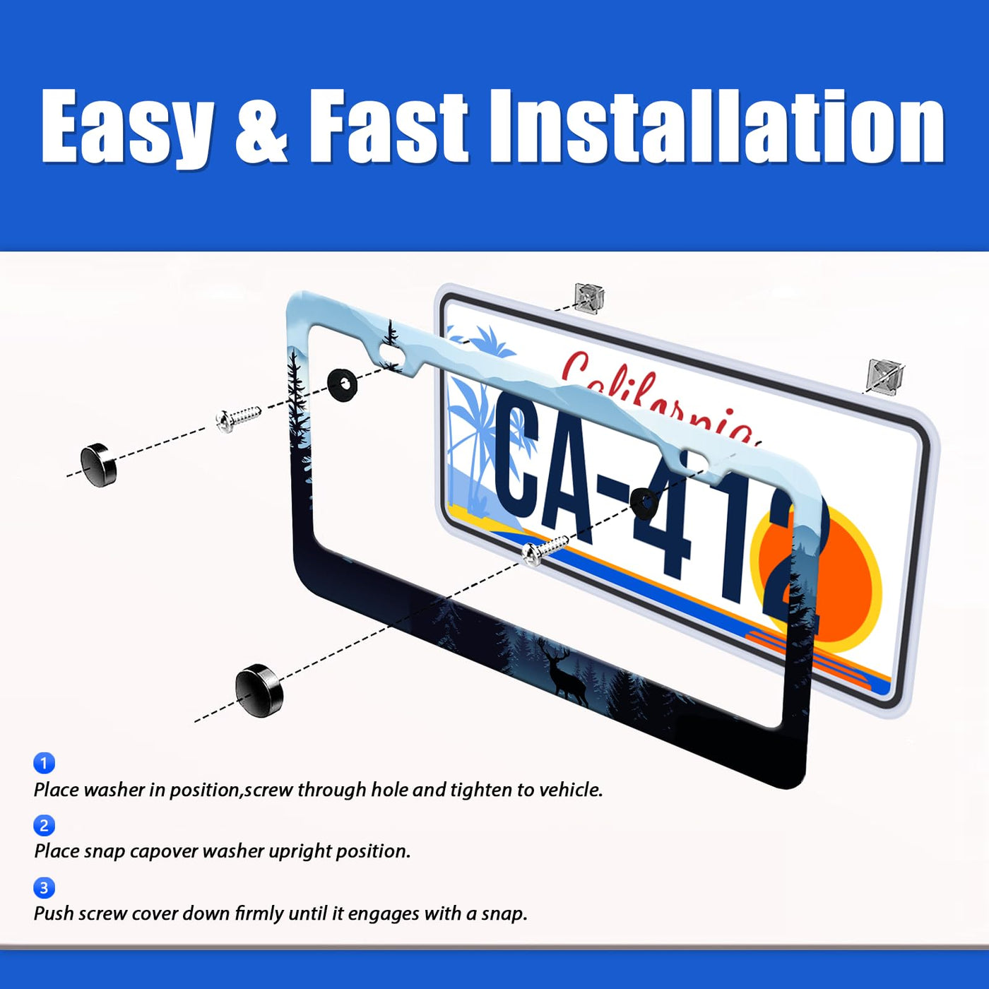 Mountains Landscape License Plate Frames Forest Deer Blue License Plate Holder for Car Decor Parts Stainless Steel License Plate