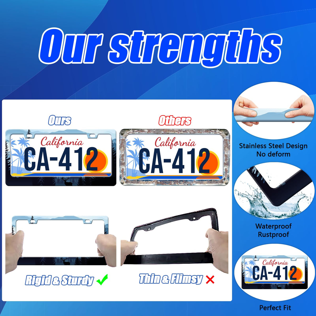 Premium license plate frames, get out of the box and be the coolest car ever!The license plate frame is made from stainless steel and measures is 12.3 x 6.3 inches. Standard license plate frame for most cars in the USA!It complete with 2 sets of screws, easy to install.No special tools needed!The four smooth rounded corners will not wear down your paint and the unique personalization makes your car even more stylish and unique!