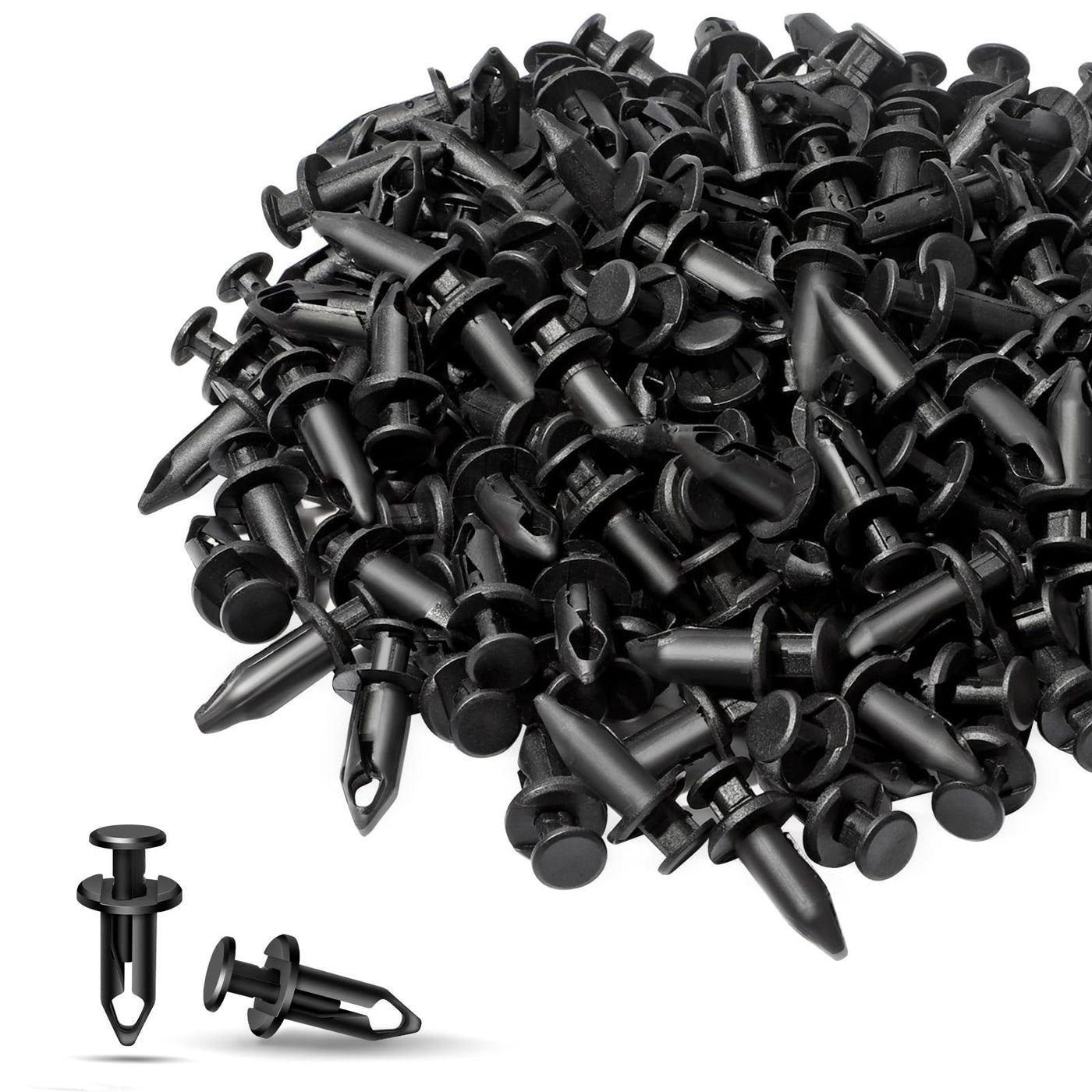 Q: What sizes do these fasteners come in, and how many are included?A: The moveland ATV UTV Nylon Body Rivets come in a pack of 60 pieces, featuring a standard 8mm size that makes them suitable for a wide range of automotive applications.