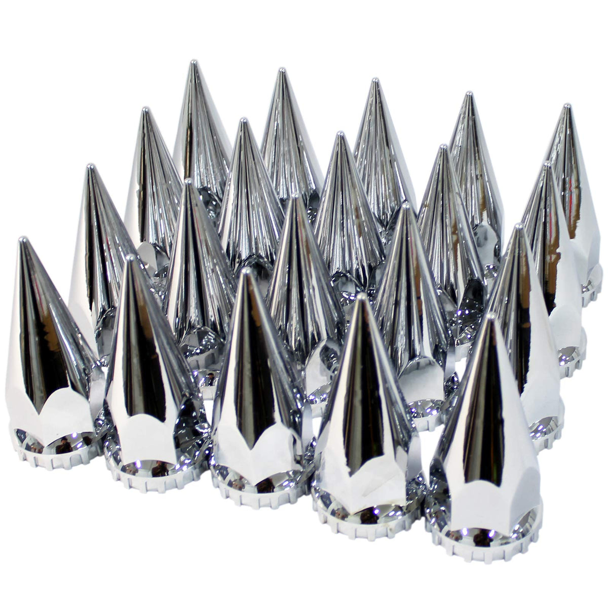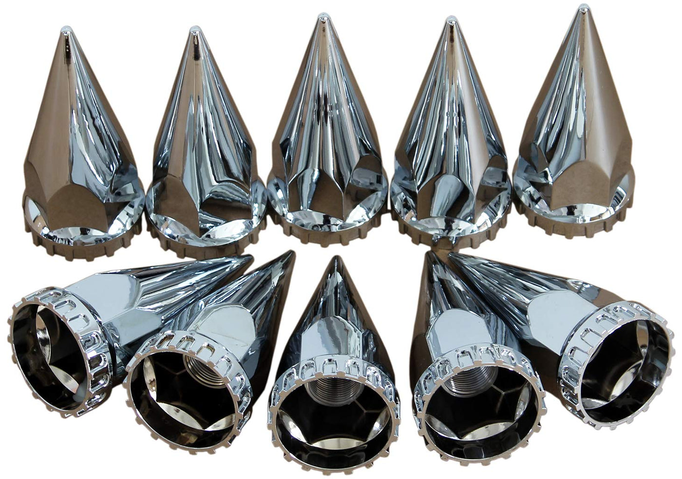 Mrjlk Chrome Abs Complete Axle Cover Set With Hub Caps And 33Mm Screw-On Spiked Lug Nut Covers For Semi Trucks (2 Front)