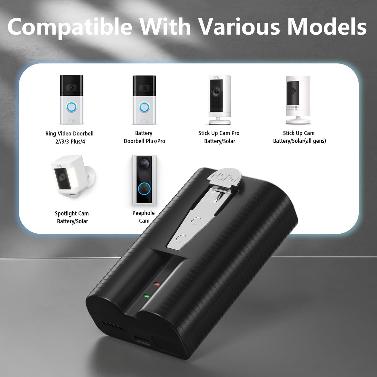 Enhance the power source for your devices with the 2-Pack Battery Replacement Kit. This kit includes two 6040mAh lithium-ion batteries and a dual charging dock, providing a convenient and reliable power solution for your Doorbell, Stick-Up Cam, Spotlight Cam, and Peephole Cam. With a high-capacity battery life of 6040mAh, these batteries offer extended usage and reduce the need for frequent replacements. The dual charging dock ensures that you always have a backup battery ready to go, so your devices stay online. Trust in the reliability and performance of these batteries to keep your devices running smoothly. Upgrade today and enjoy peace of mind with extended battery life.