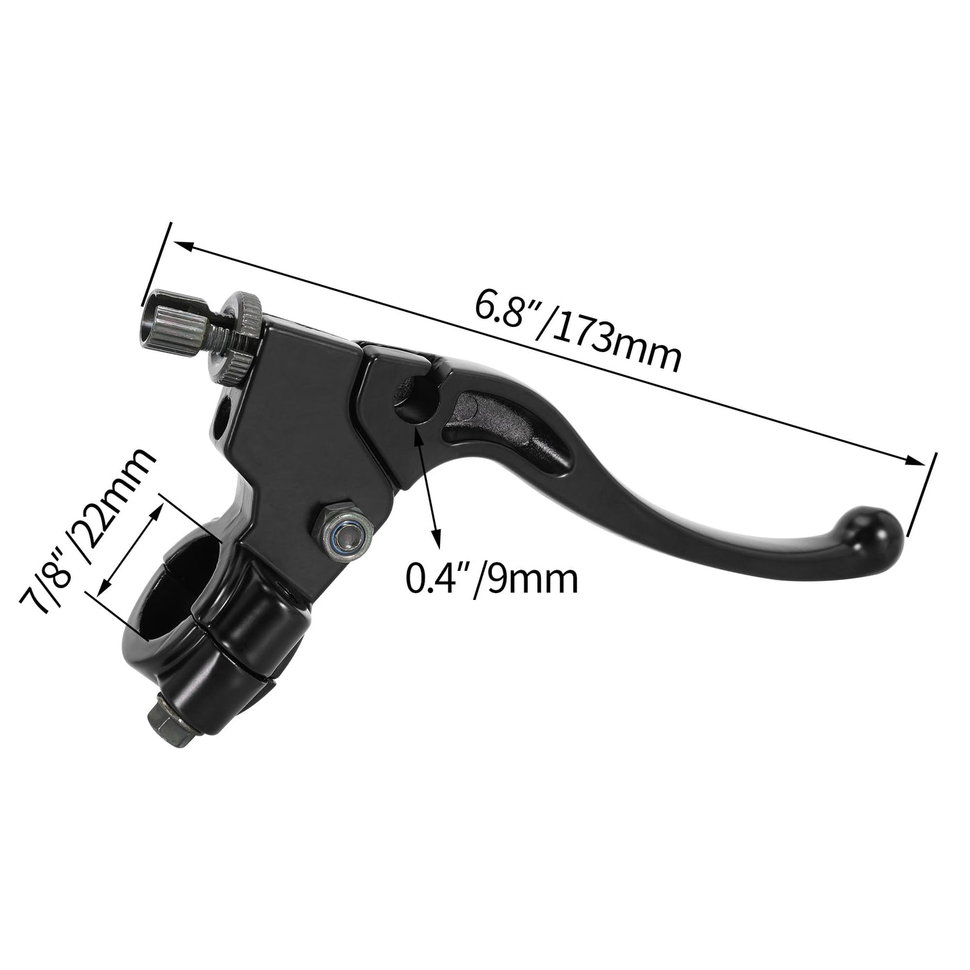 Q: What are the dimensions of the MTATCN clutch lever perch?A: The overall length of the MTATCN clutch lever perch is 6.8 inches (173 mm) with mounting holes measuring 0.87 inches (22 mm). Please ensure these dimensions match your bike's specifications before purchasing.