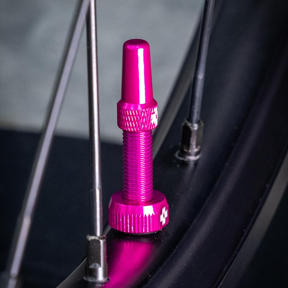 We know how frustrating it is to have a leaky bike valve that just doesnt seal! So here at Muc-Off, we set about designing and making our own premium tubeless valves to solve the hassle of finding your tire flat every time you go to ride. Our new Tubeless Valves are stronger and lighter than ever before. We've upgraded the aluminium from 6061 to 7075 and weve made them even easier to use by introducing a new machined six slot channel in the base which allows for air and sealant to enter the tire with ease. Our tubeless valve stems come in three different sizes, are compatible with most tubeless rim types with a Presta valve and are suitable for use on MTB, Gravel and Road Bikes. We've covered all bases and designed our valves with a built-in valve core removal tool so that you're never caught short. If that wasn't enough, the Muc-Off Tubeless Valves are available in twelve different anodized colorways - so you can bling up your ride to your heart's content!