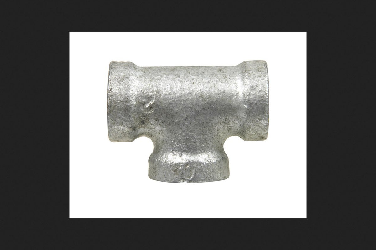 Q: What is the weight of the Mueller Industries 510-610BC Tee fitting?A: The Mueller Industries 510-610BC Tee weighs 6.8 pounds, which is typical for a galvanized iron pipe fitting of this size.