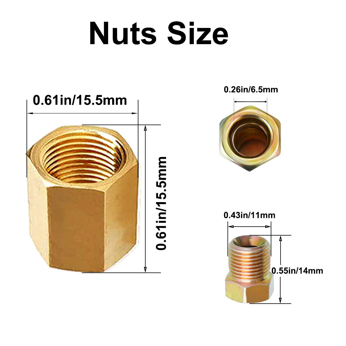 MuHize's upgraded brake line fittings and unions are crafted with durable brass material and feature a special rust corrosion-proofing technology for long-lasting performance. This particular assortment of fittings is specifically designed for use with 1/4 inch brake lines, making them suitable for various brake line repair or installation projects. Included in the package are: 1. 5 x metric 7/16-24 threads unions 2. 10 x metric 7/16-24 threads nuts These fittings and unions provide a secure and reliable connection for your 1/4 inch brake lines, ensuring a leak-free brake system. The brass construction adds strength and durability, while the rust corrosion-proofing technology enhances the longevity of the fittings, making them ideal for automotive, industrial, or other applications where 1/4 inch brake lines are utilized. Upgrade your brake lines with MuHize's brass fittings and unions to ensure a dependable and efficient brake system. This comprehensive assortment of fittings is a convenient solution for your 1/4 inch brake line needs, offering high-quality components for your repair or installation projects.