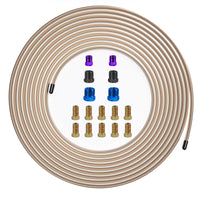 Muhize 1/4 Copper-Nickel Brake Line Tubing - 25 Ft. 1/4 Inch Copper Nickel Hydraulic Tube With 16 Fittings, 1/4 Rustproof Brake Line Replacement Kit (2024 New)