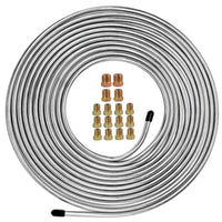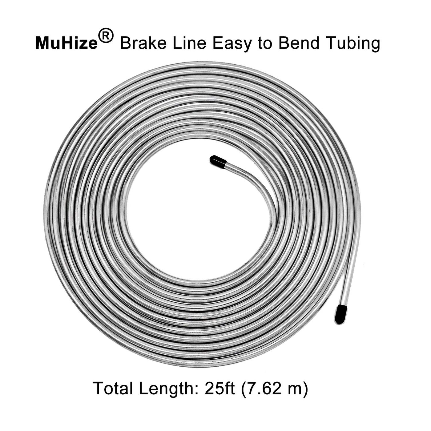 Muhize 25 Ft. Of 1/4 Brake Line Tubing Kit - Flexible Zinc-Coated Steel Tube Roll 25 Ft 1/4 Rustproof, Corrosion Protection (Includes 16 Inverted Flare Fittings)