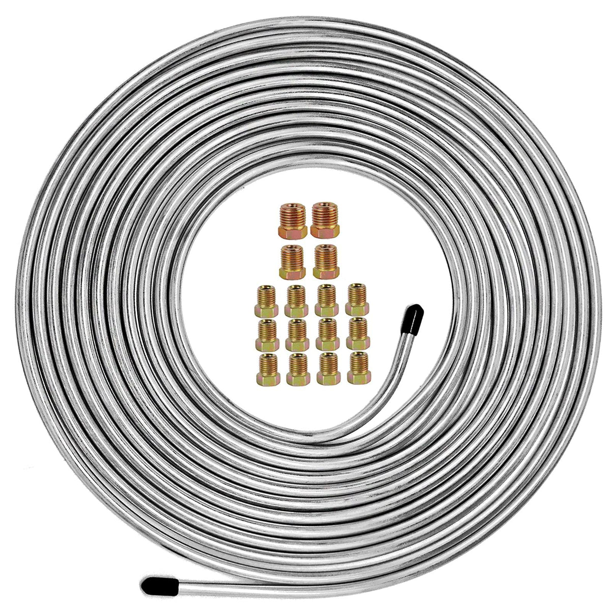 MuHize brake lines are made with unique rust corrosion proofing technology. The latest brake line is better than standard steel tubing with corrosion resistance. It fits for most hydraulic braking systems, fuel systems, and transmission systems, etc. It is also widely suitable for household, industrial and commercial uses. This listing features 1 piece of brand new complete brake line kit (Including 16 fittings). Package includes: ? 1 x Silver 25 Ft. of 1/4” Brake Line Tubing; ? 12 x 1/4” (7/16-24) Inverted Tube Nut; ? 2 x 1/4” (1/2-20) Inverted Tube Nut; ? 2 x 1/4(9/16-18) Inverted Tube Nut.