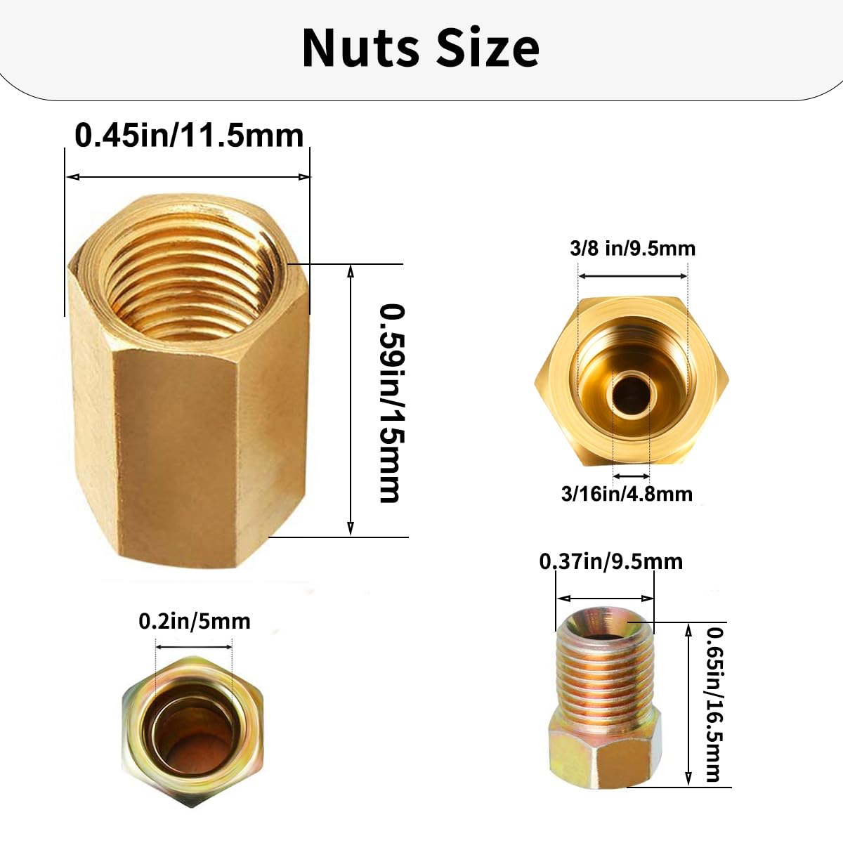 Muhize Upgraded Brake Line Fittings And Unions Are Made Of Durable Brass With Unique Rust Corrosion Proofing Technology.This Fitting Assortment Is Special For 3/16 Brake Line.Package Includes:? 5 X 3/8-24 Threads Unions;? 10 X 3/8-24 Threads Nuts.