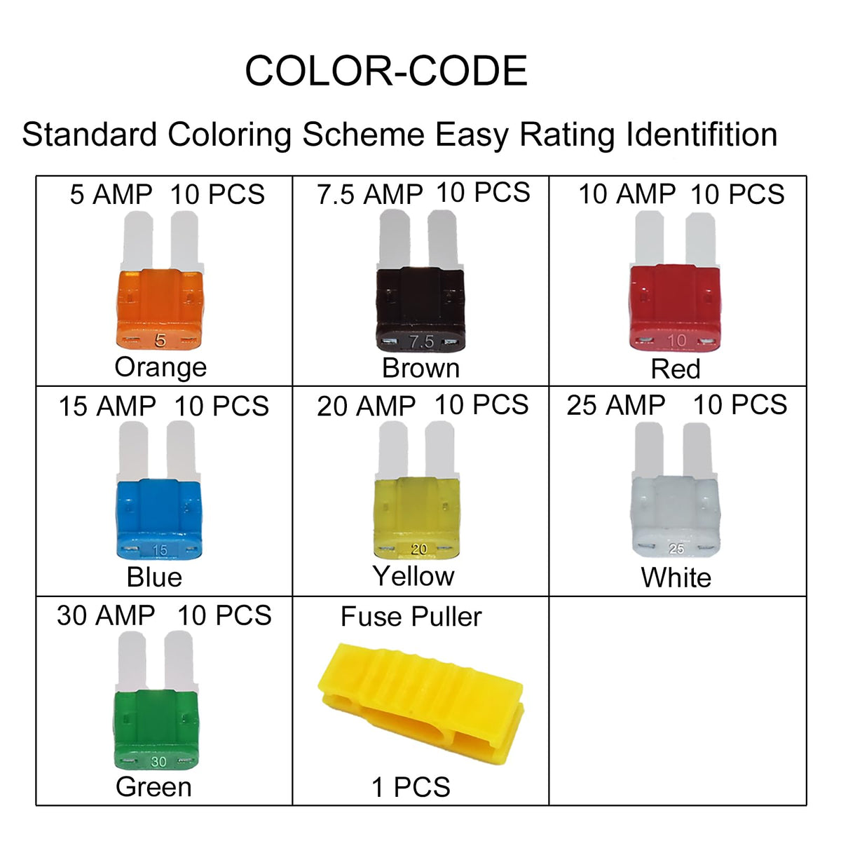 Versatile Fuse Options: Includes blade fuses of various amperages - 5A, 7.5A, 10A, 15A, 20A, 25A, and 30A - to cater to all your electrical needs.