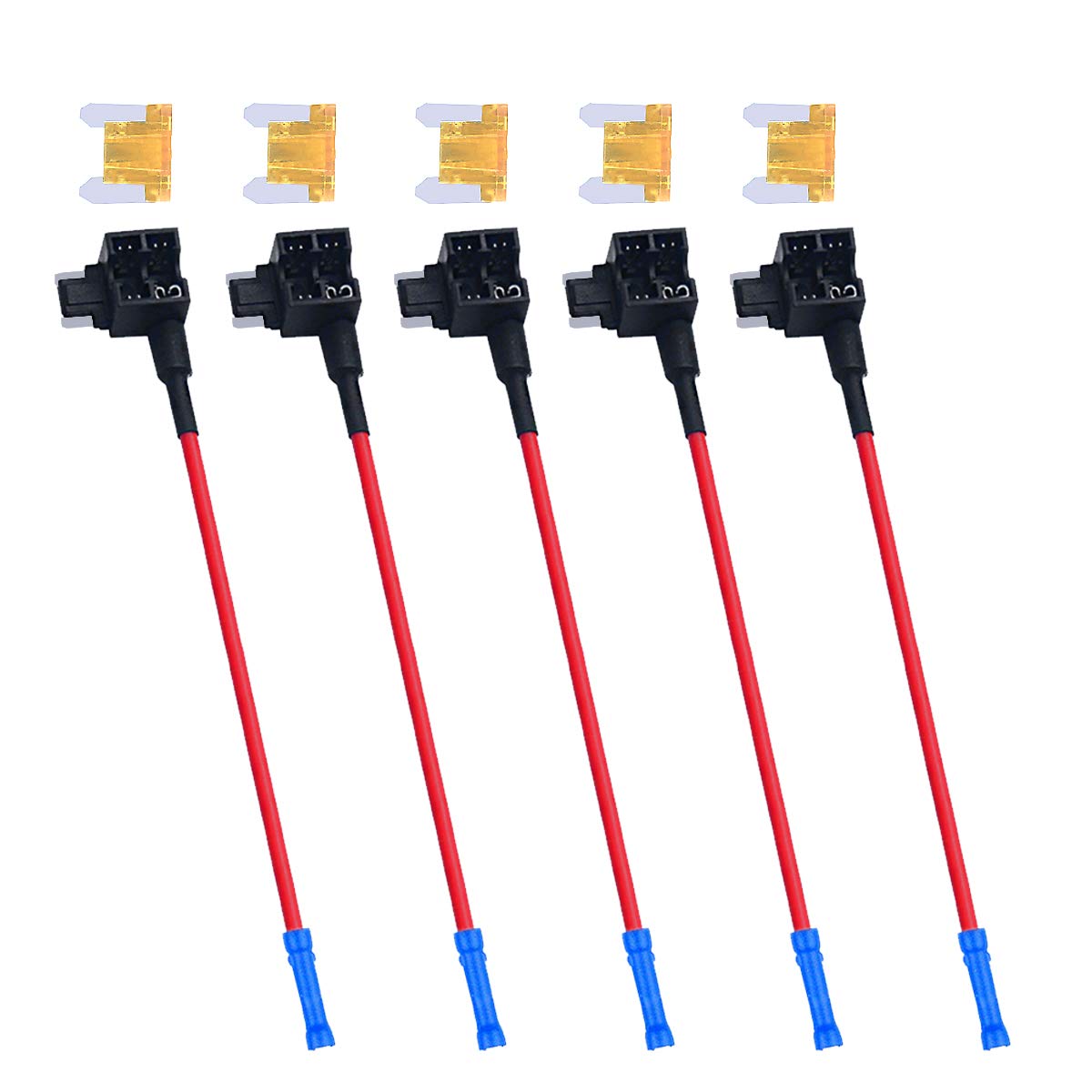 Muhize Upgrade Mini Fuse Tap - Automotive Low Profile Fuse Taps(2023 New), Car Rv Camper Add-A-Circuit Fuse Adapter, 12V Tap Fuse Holder With 5 Amp Low Profile Mini Blade Fuse (5 Pack)