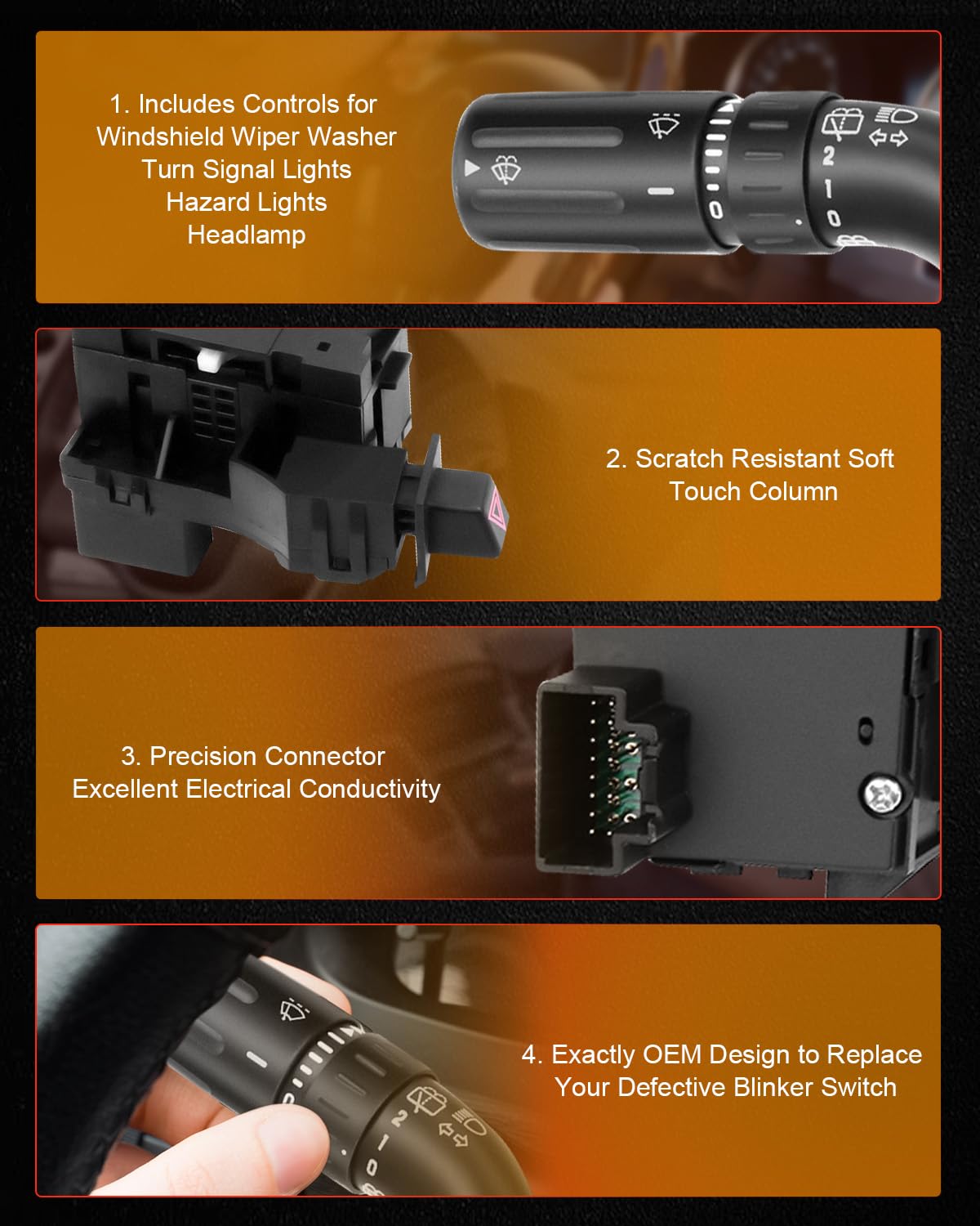 Q: What benefits does the CCIYU Turn Signal Switch offer?A: The CCIYU Turn Signal Switch has been quality tested for trouble-free performance, providing a direct replacement that ensures proper fit and function while enhancing your vehicle's capabilities.