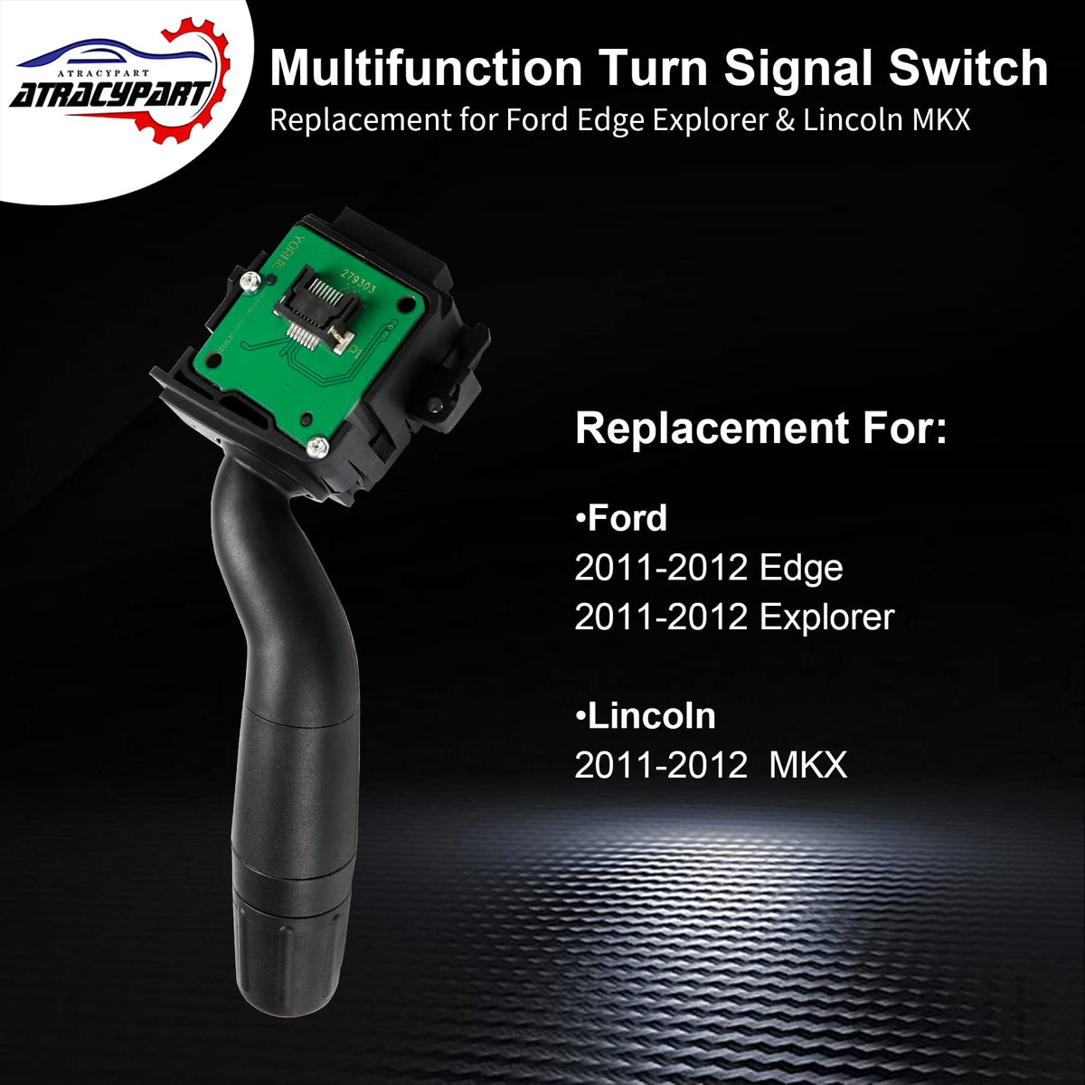 Q: Is this turn signal switch compatible with 2011-2012 Ford Edge and Explorer models?A: Yes, this multifunction turn signal switch is specifically designed as a replacement for 2011-2012 Ford Edge, Ford Explorer, and Lincoln MKX models.