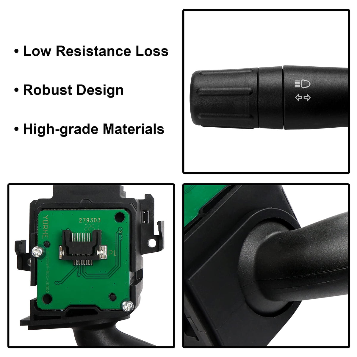 Q: What materials are used in the construction of this switch?A: The multifunction turn signal switch is made from high-impact resistance plastic and features copper alloy conductors that ensure superior electrical conductivity and durability.