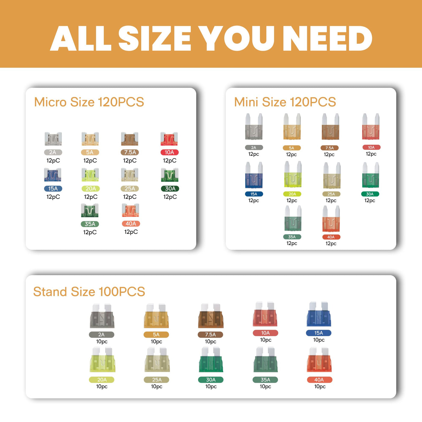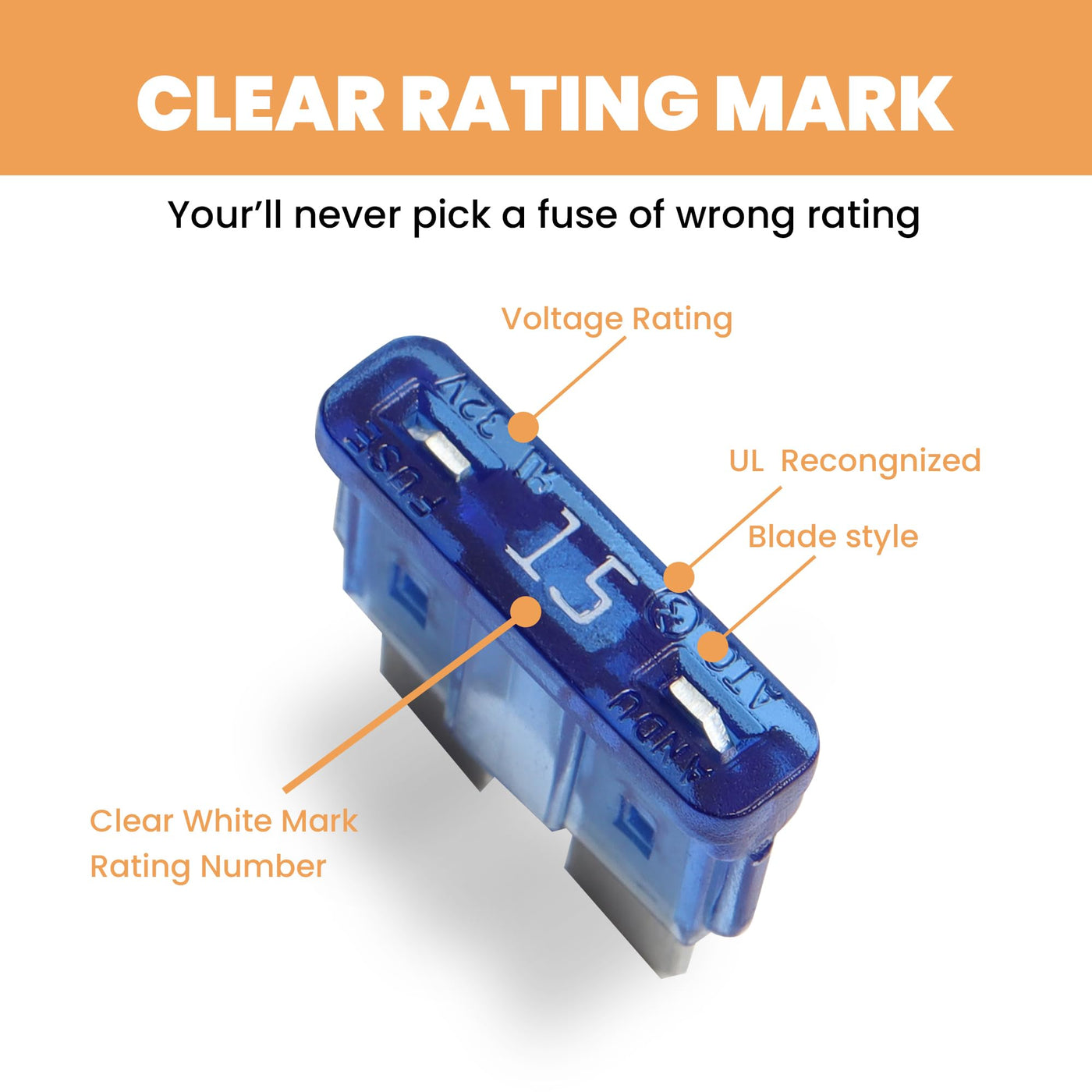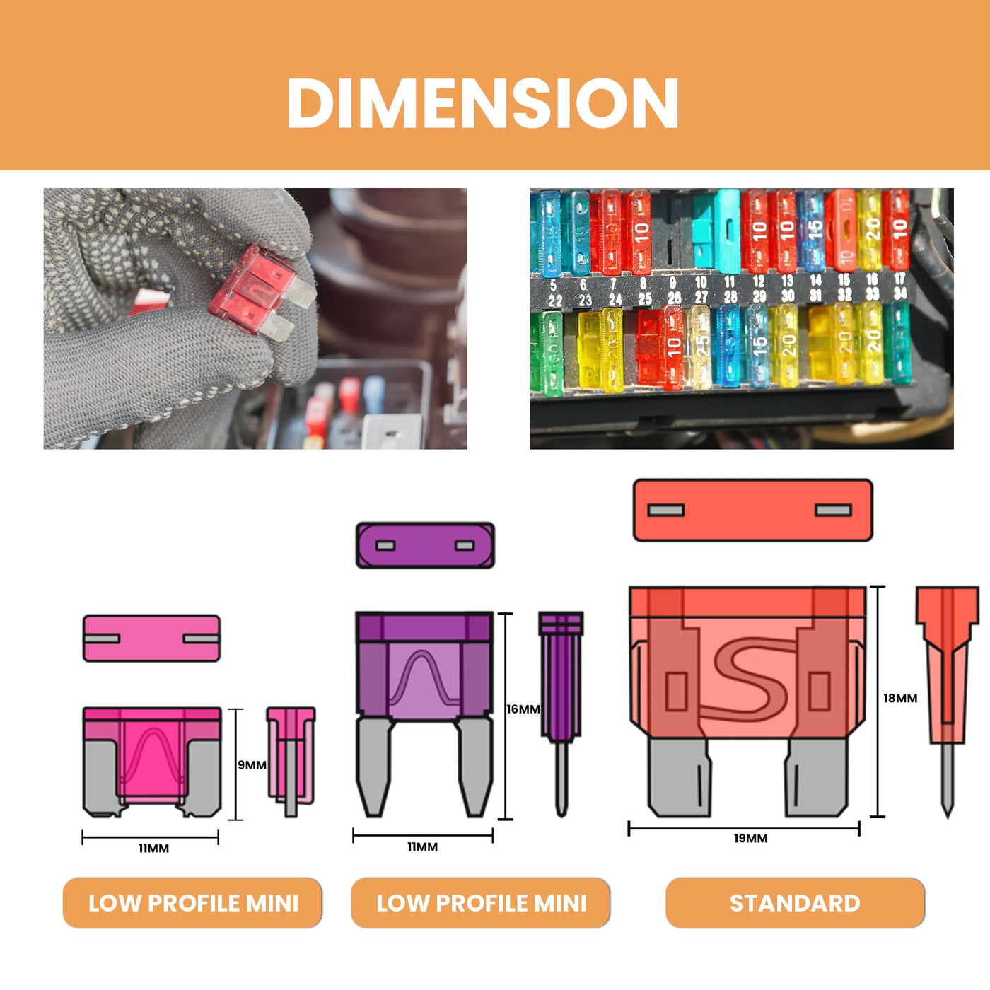CONFIDENT & EASY INSTALLATION: These 32 Volt fast-acting replacement critical device/ electrical gadgets from short circuit, overload etc. They can be easily identified by their color-coded plastic housings, and the carved amp rating figures on the top CONVENIENT DETECTION: The plug-in blade fuses are made from transparent PES with zinc alloy inserts and transparent housings for viewing the fuse link status and quick detection of a blown fuse GREAT COMPATIBILITY: These assorted fuses are specifically EXPLICIT DIAGRAM: A diagram inside the storage box case corresponds to every compartment with labels so you know what size each fuse is and where to get it in the box ALL SIZES YOU NEED: This plug-in replacement set contains a complete assortment of regular blade type fuses in 10 most commonly used ranges for cars and trucks, who can be mounted in fuse blocks, in-line fuse holders, or fuse clips