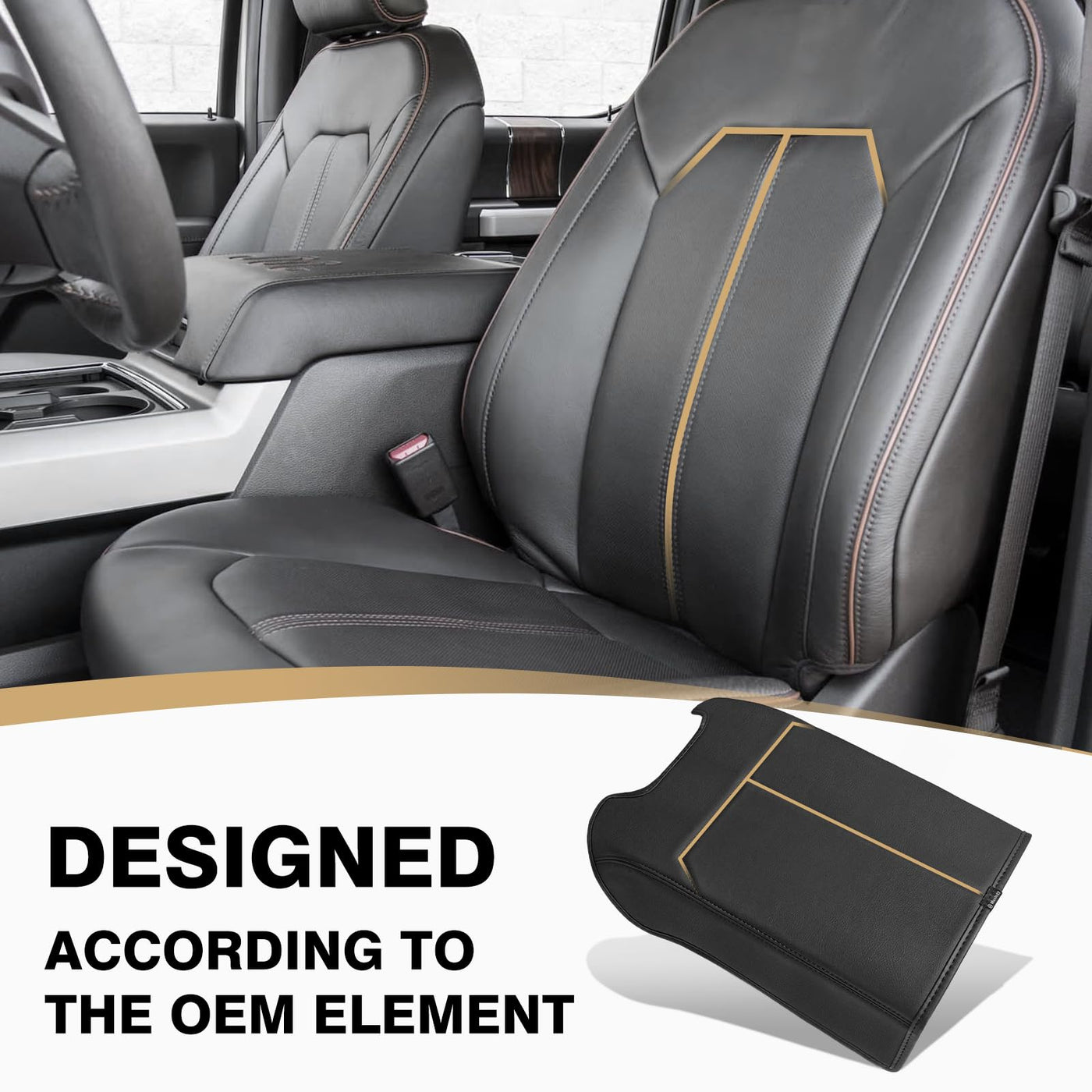 Muslogy Center Console Armrest Cover Compatible with Ford F250 F350 F450 2017-2022 Super Duty Comfort Armrest Pad Arm Rest Cushion Vegan Leather Protector Regular Thick(Bucket Seat ONLY)