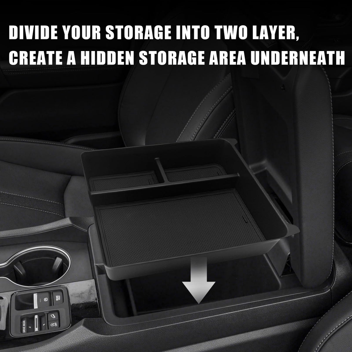 Q: Does the organizer come with any additional features for storage?A: Yes, the Muslogy Center Console Organizer features a compartmental design that helps keep your items organized neatly and provides hidden storage space underneath.
