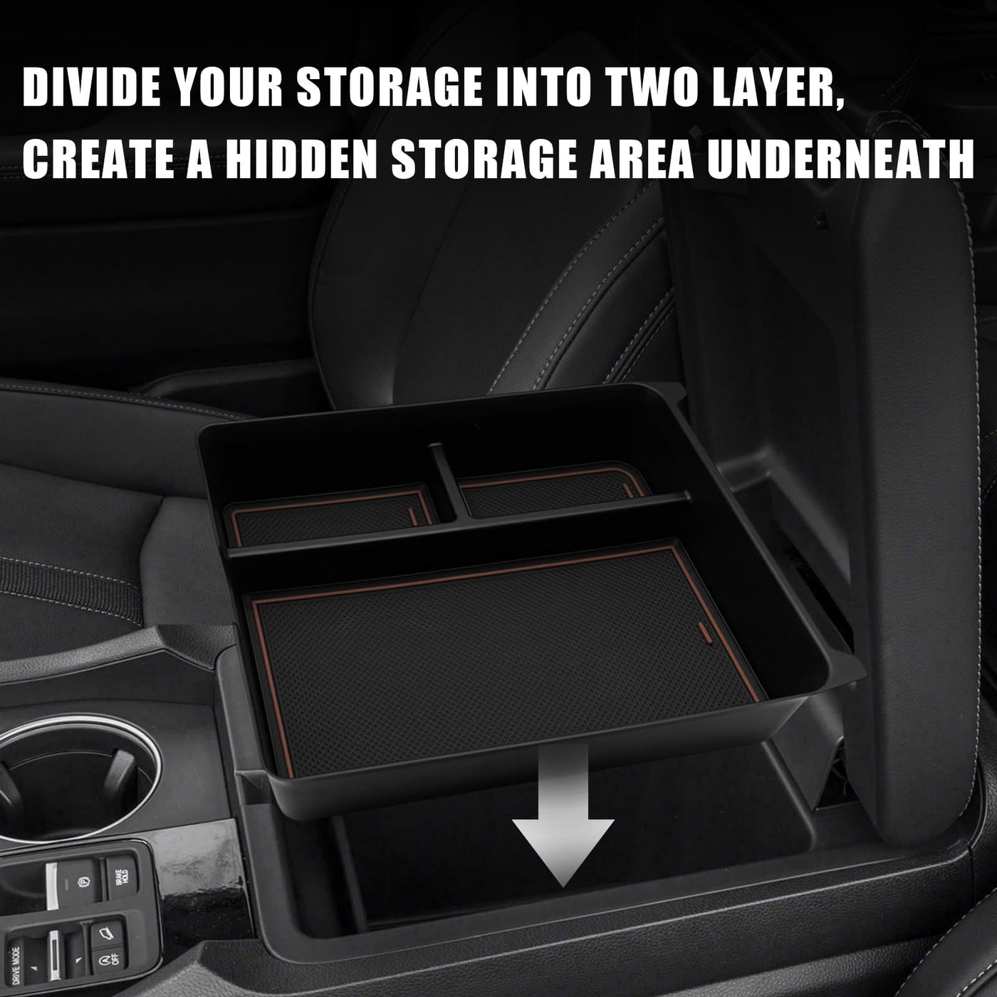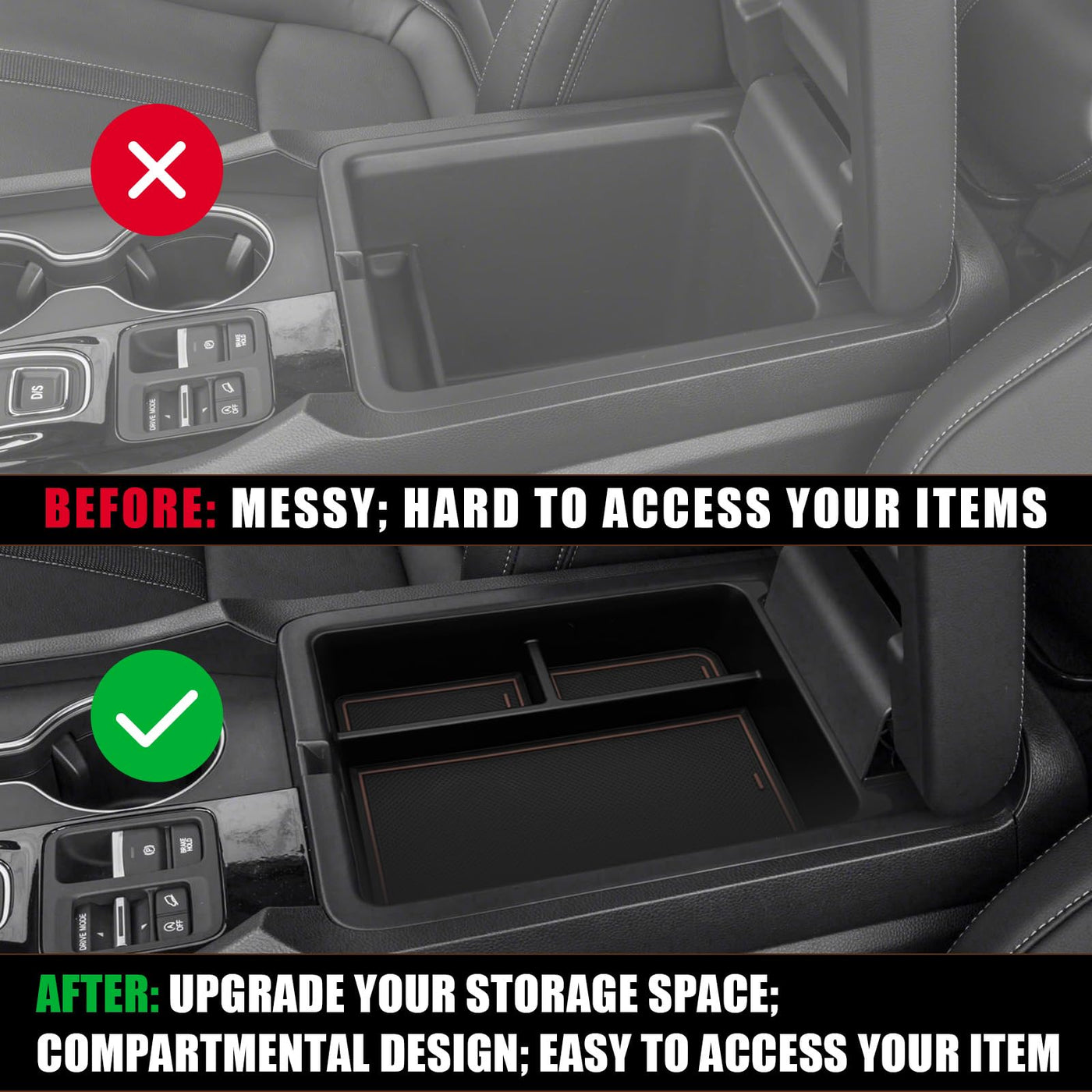 Q: What are the benefits of using this center console organizer?A: The compartmental design of the Muslogy Center Console Organizer helps to keep your items neatly organized and creates hidden storage space underneath, enhancing your vehicle's storage capacity.