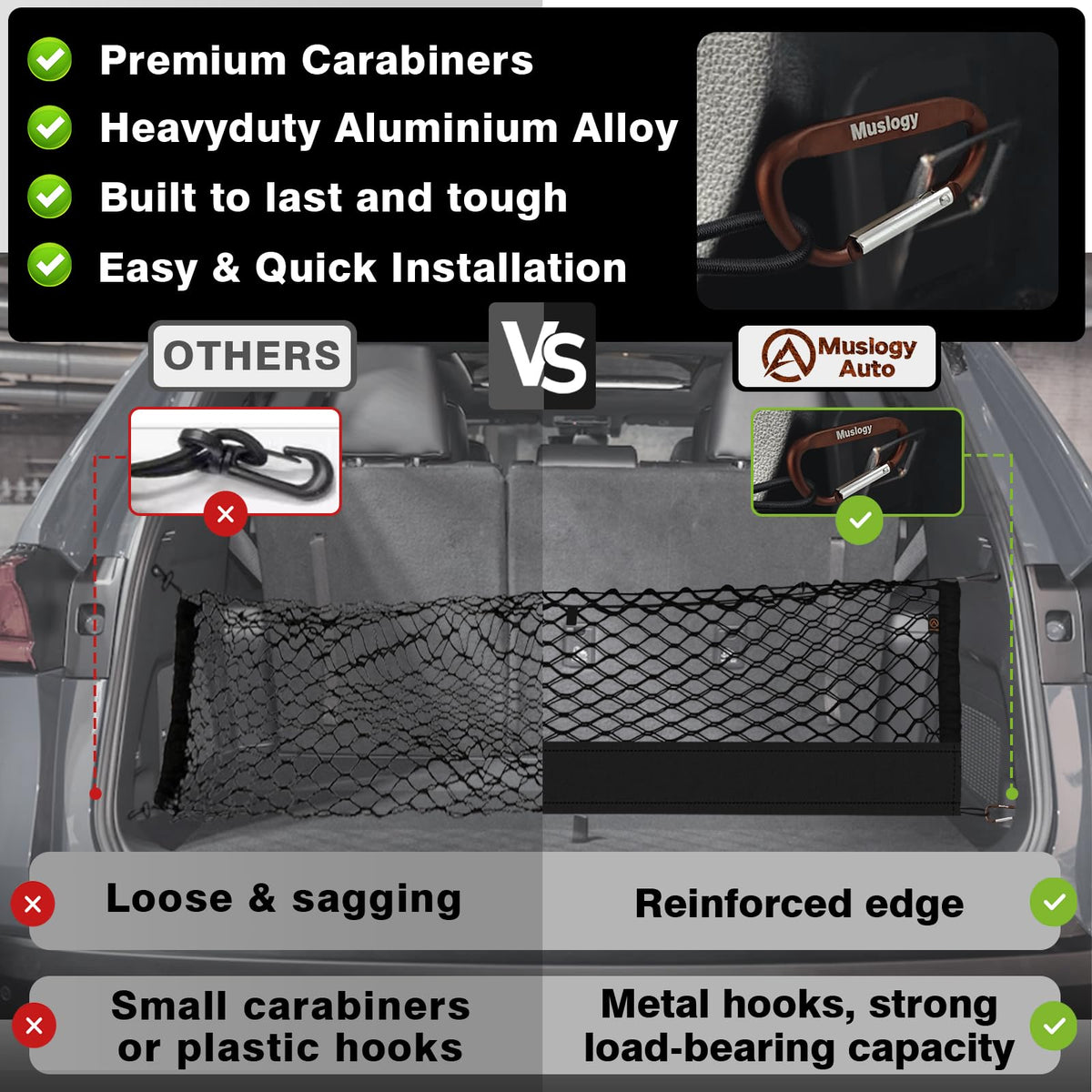 Muslogy Envelope Style Trunk Cargo Net Compatible with 2014-2025 Toyota Highlander Accessories Custom Fit Trunk Organizer Upgraded Mesh Storage Luggage Net with Metal Hooks