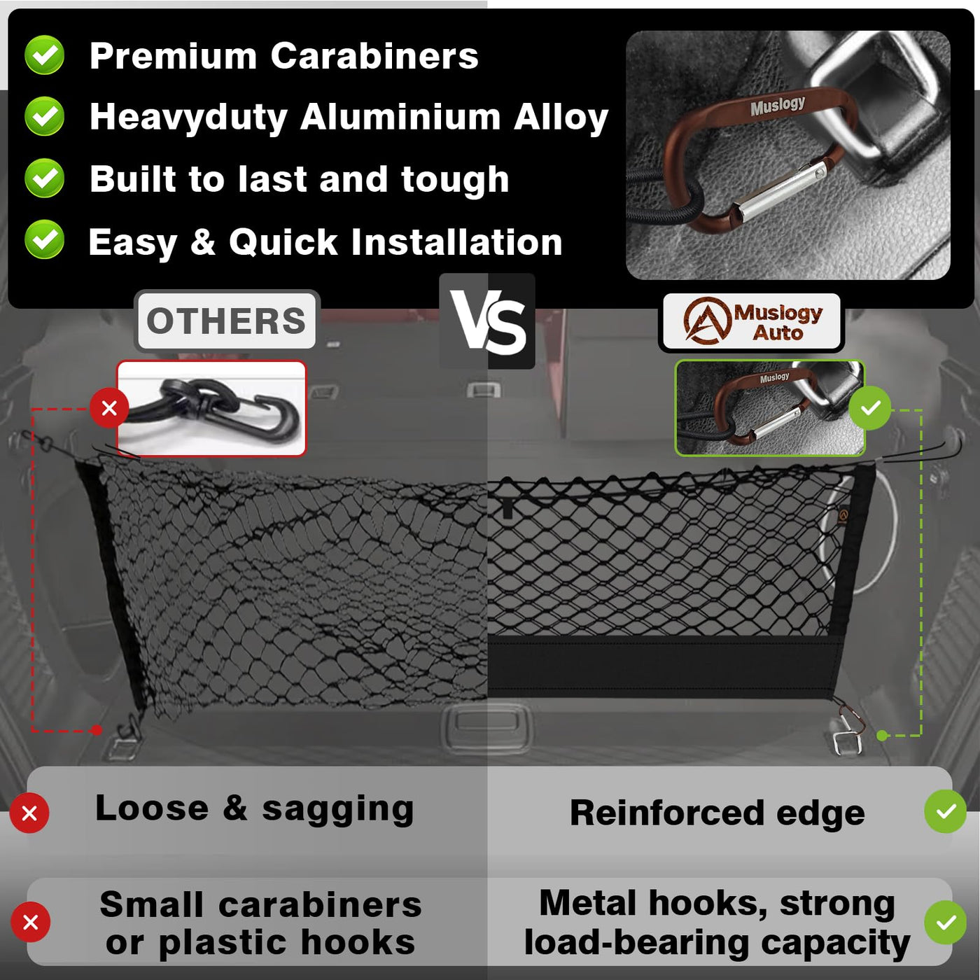 Muslogy Envelope Style Trunk Cargo Net Compatible with 2015-2021 Jeep Grand Cherokee Accessories Custom Fit Trunk Organizer Upgraded Mesh Storage Luggage Net with Metal Hooks (WK2 ONLY)