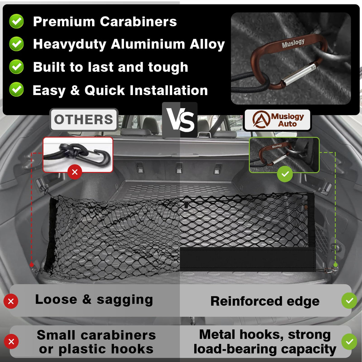 Muslogy Envelope Style Trunk Cargo Net Compatible with 2015-2024 2025 Outback Accessories Custom Fit Trunk Organizer Upgraded Storage Luggage Net with Metal Hooks
