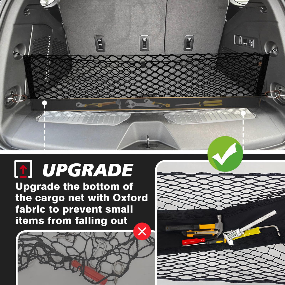 Muslogy Envelope Style Trunk Cargo Net Compatible with 2021-2025 Chevy Suburban&Tahoe, GMC Yukon&Yukon XL, Cadillac Escalade Accessories Upgraded Mesh Storage Luggage Net with Metal Hooks