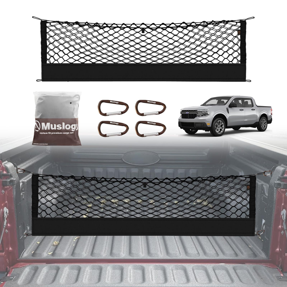Muslogy for Maverick Cargo Mesh Net Accessories,Stretchable Trunk Organizer Cargo Net Elastic Mesh with Hooks Compatible with Ford Maverick XL XLT 2021 2022 2023 2024 2025