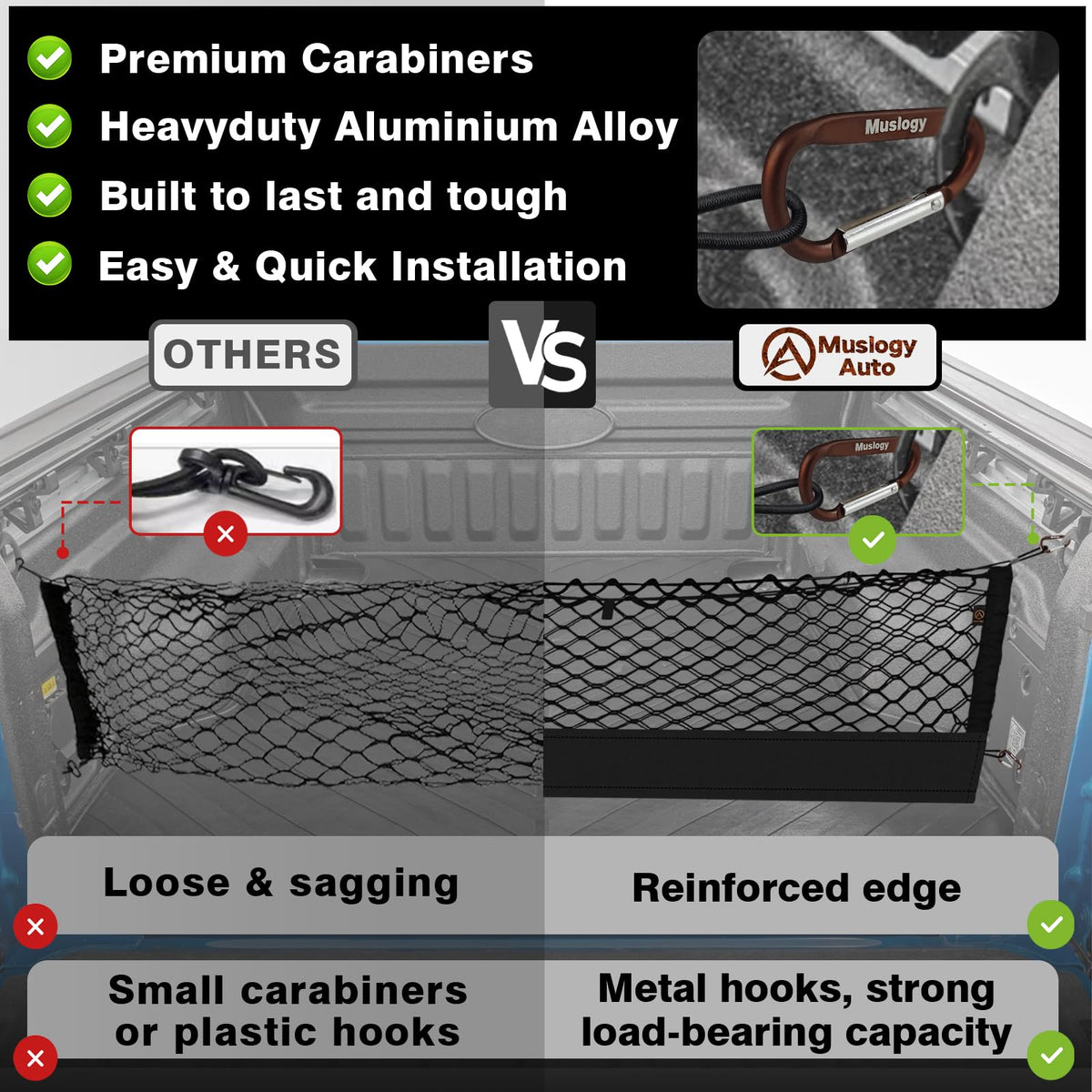 Muslogy Truck Bed Cargo Net Compatible with 2022-2025 Ford Maverick Accessories Envelope Style Bed Net Trunk Organizer - Upgraded Support Stability Rope with Metal Carabiners Tight Fit, Won't Sag