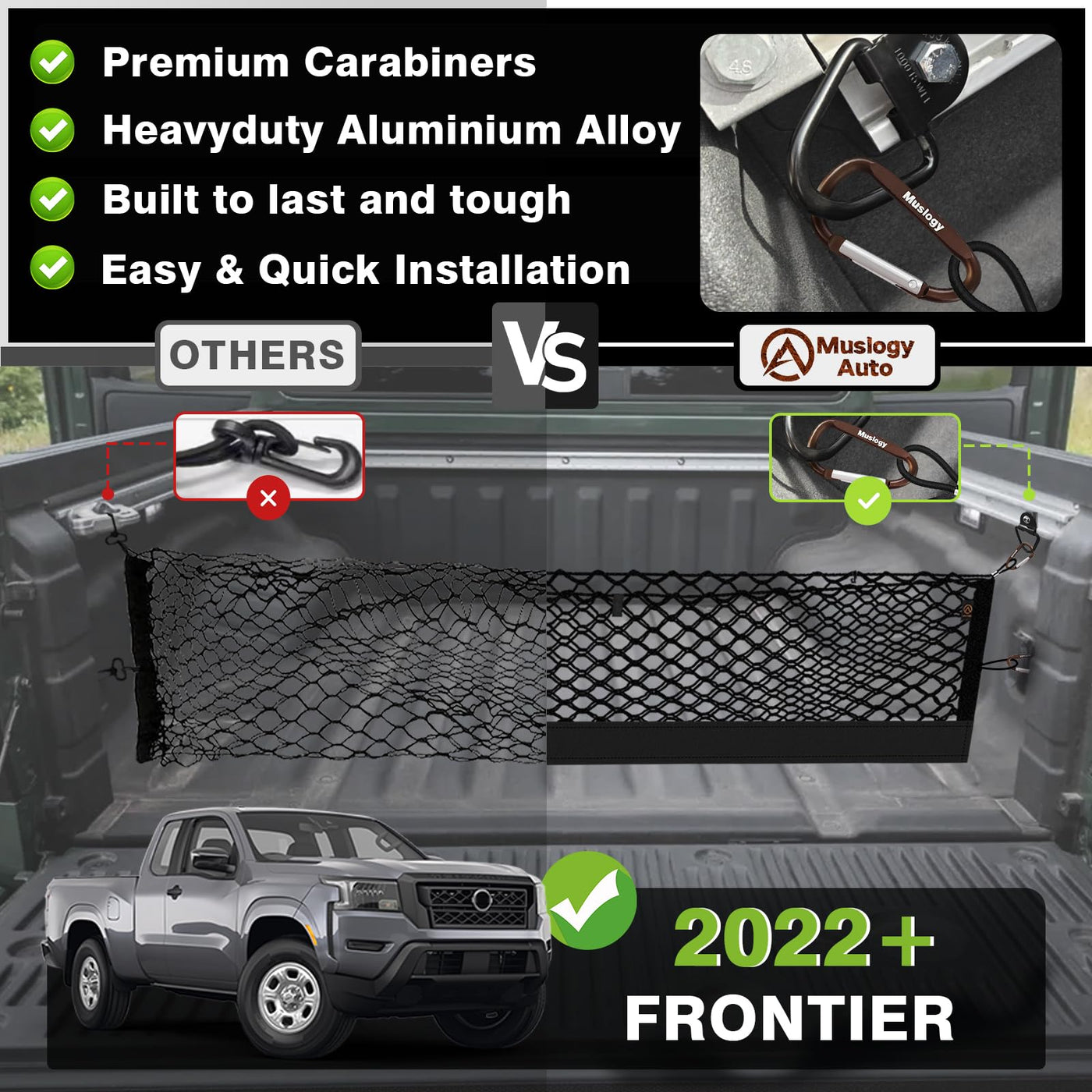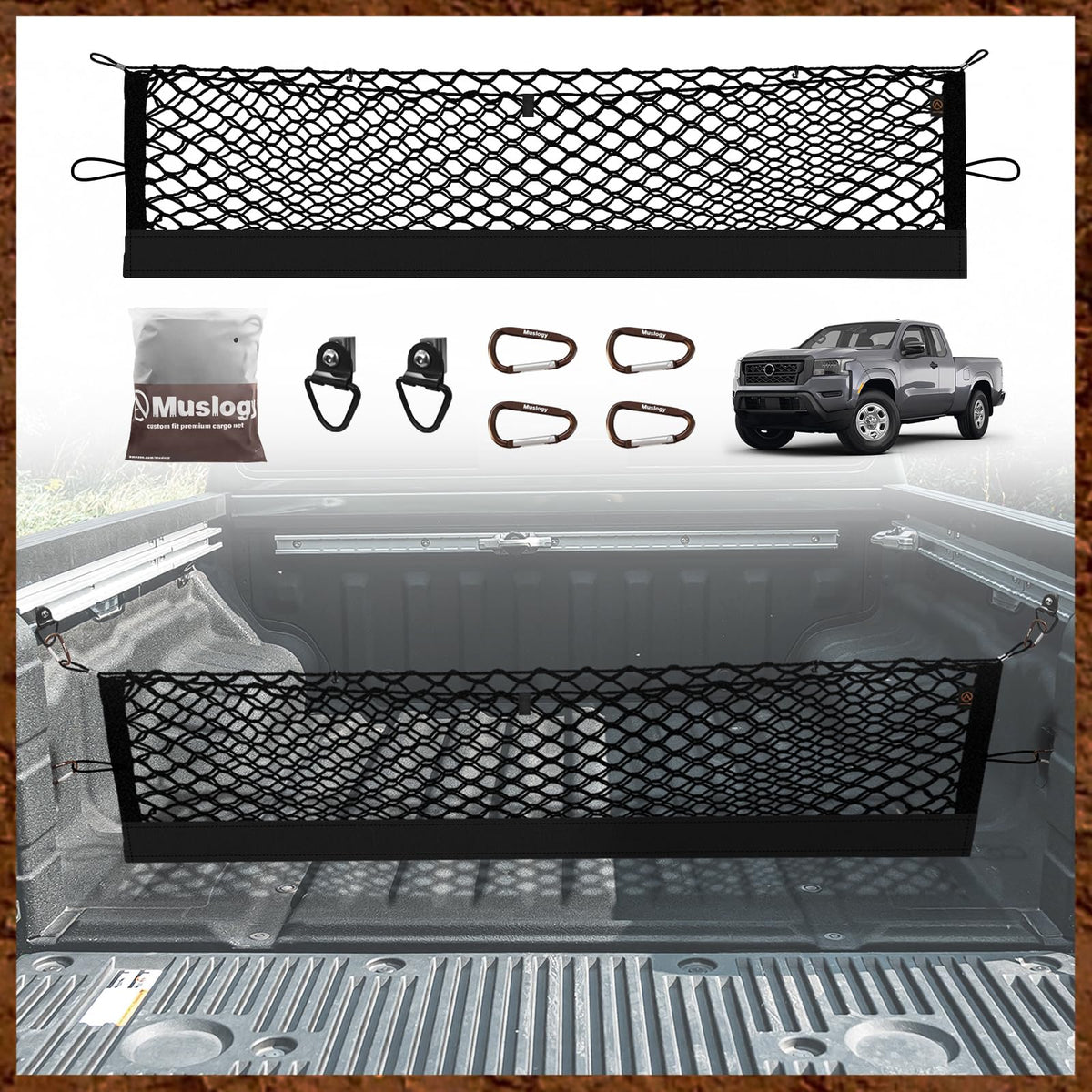 Muslogy Truck Bed Cargo Net Compatible With Nissan Frontier 2022-2024 2025 Accessories Storage Organizer Pickup Truck Bed Envelo