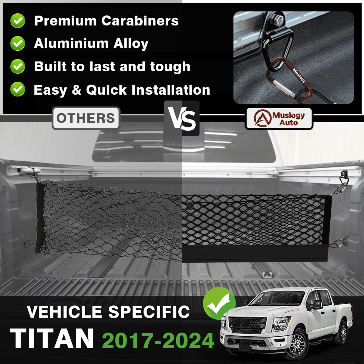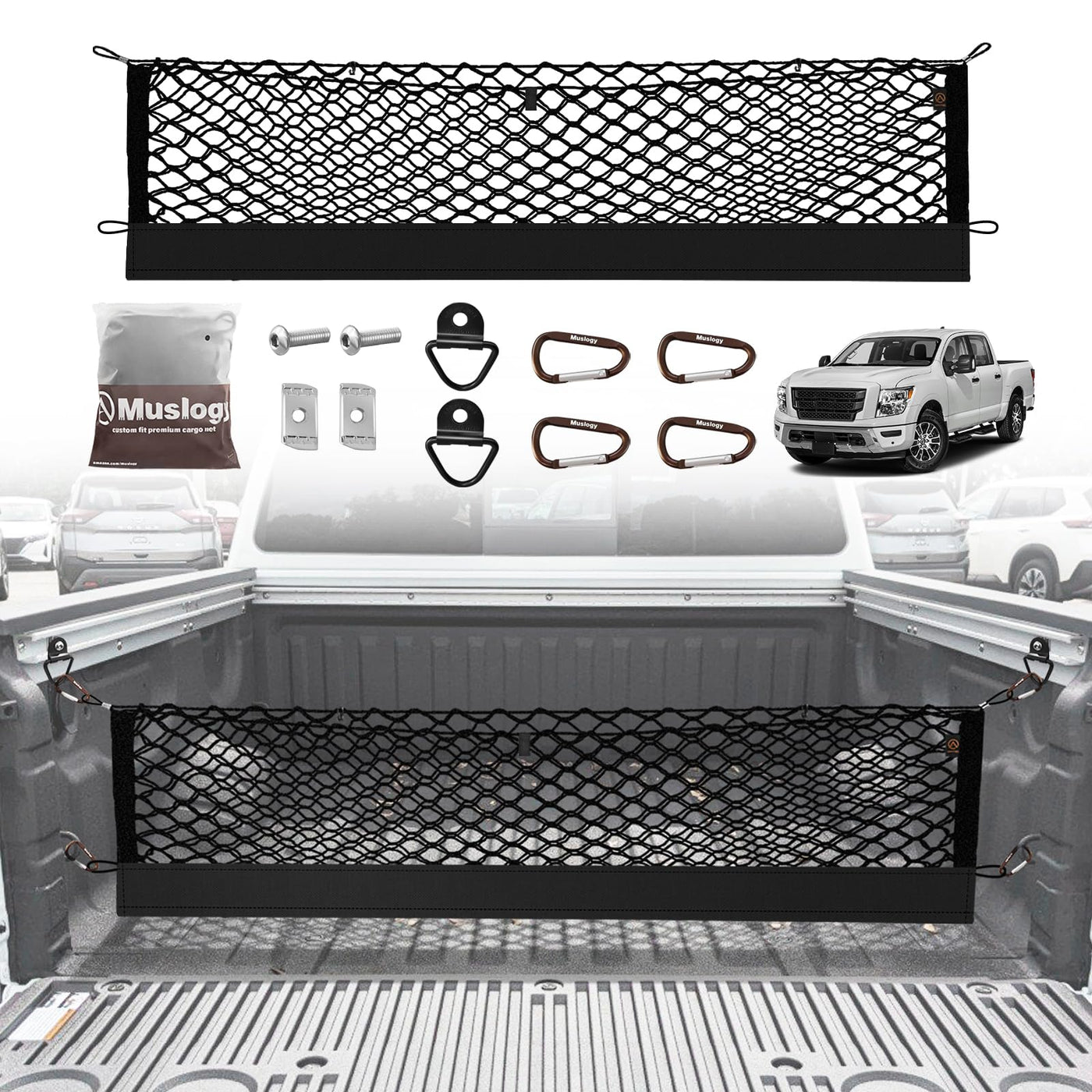 Muslogy Truck Bed Cargo Net Compatible With Nissan Titan 2017-2025 Accessories Storage Organizer Pickup Truck Bed Envelope Style
