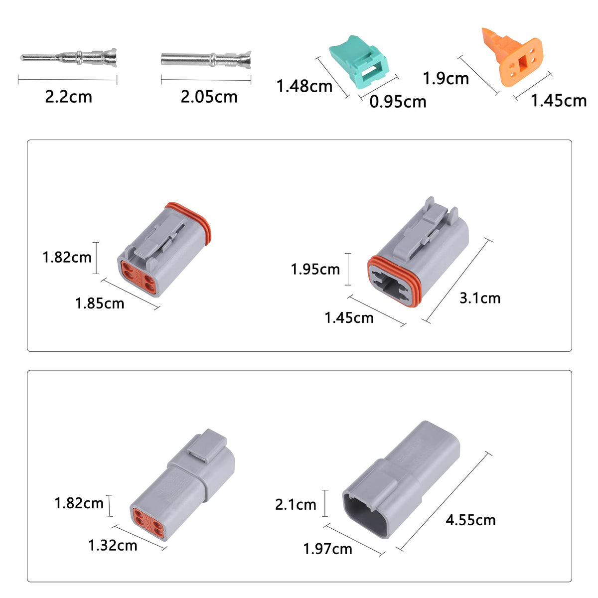 Muyi 10 Kit 4 Pin Way Dt Series Connector Gray Receptacle Ip67 Waterproof Heavy Duty 14-18 Awg 13 Amps Continuous Dt04-4P Dt06-4