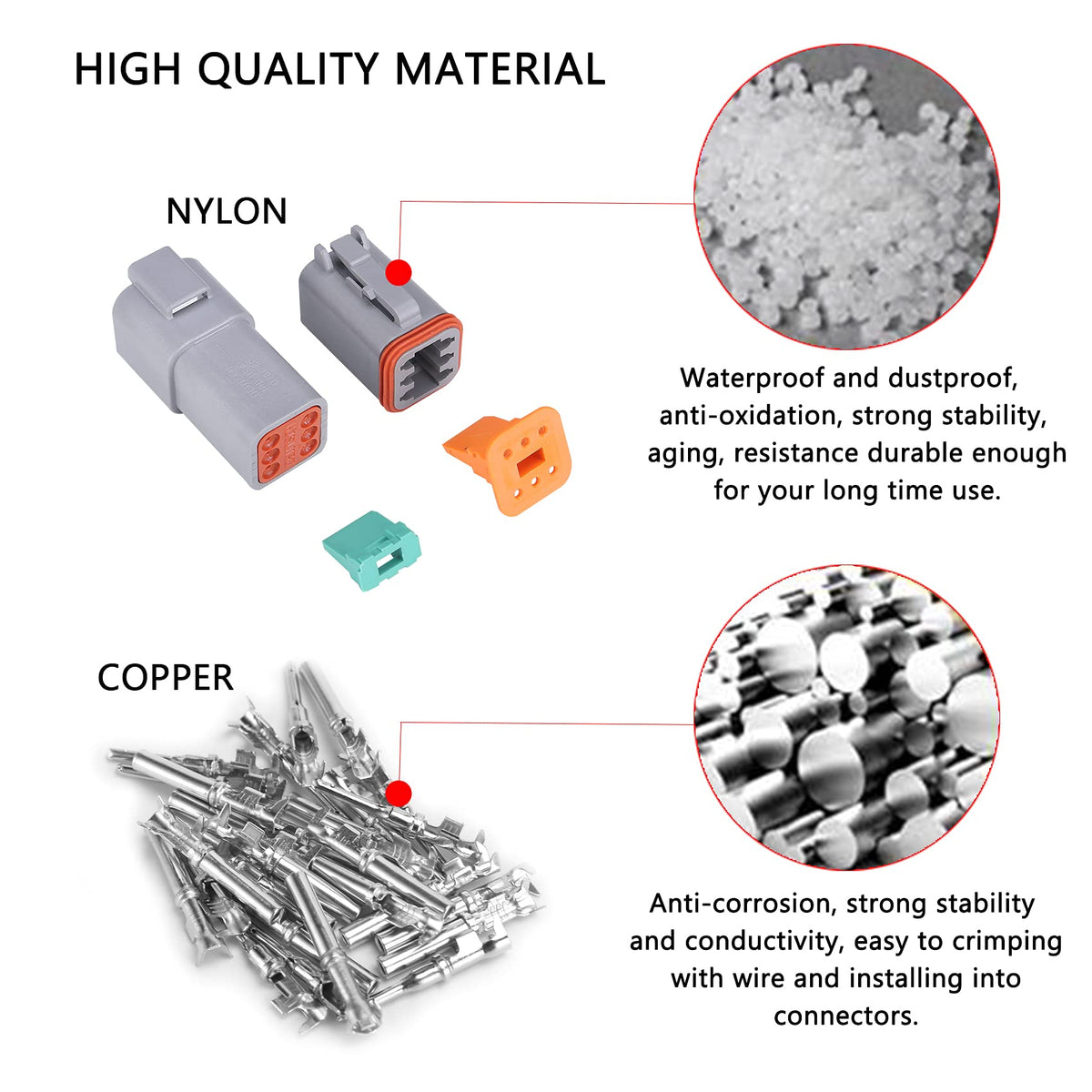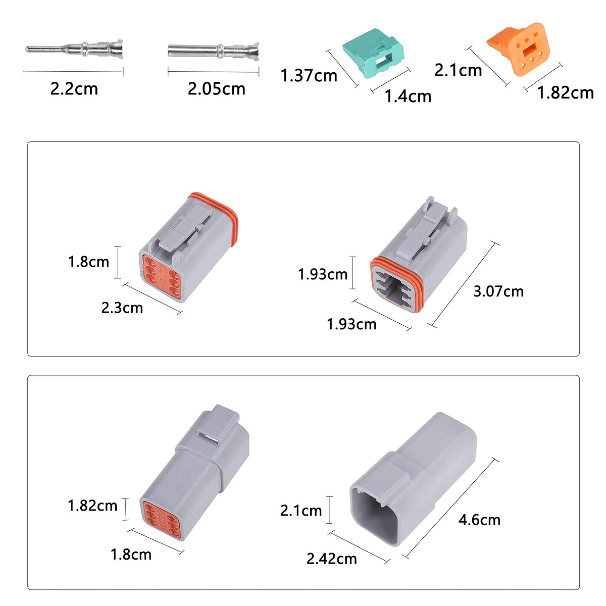 Muyi 5 Kit 6 Pin Way Dt Series Connector Gray Receptacle Ip67 Waterproof Heavy Duty 14-18 Awg 13 Amps Continuous Dt04-6P Dt06-6S
