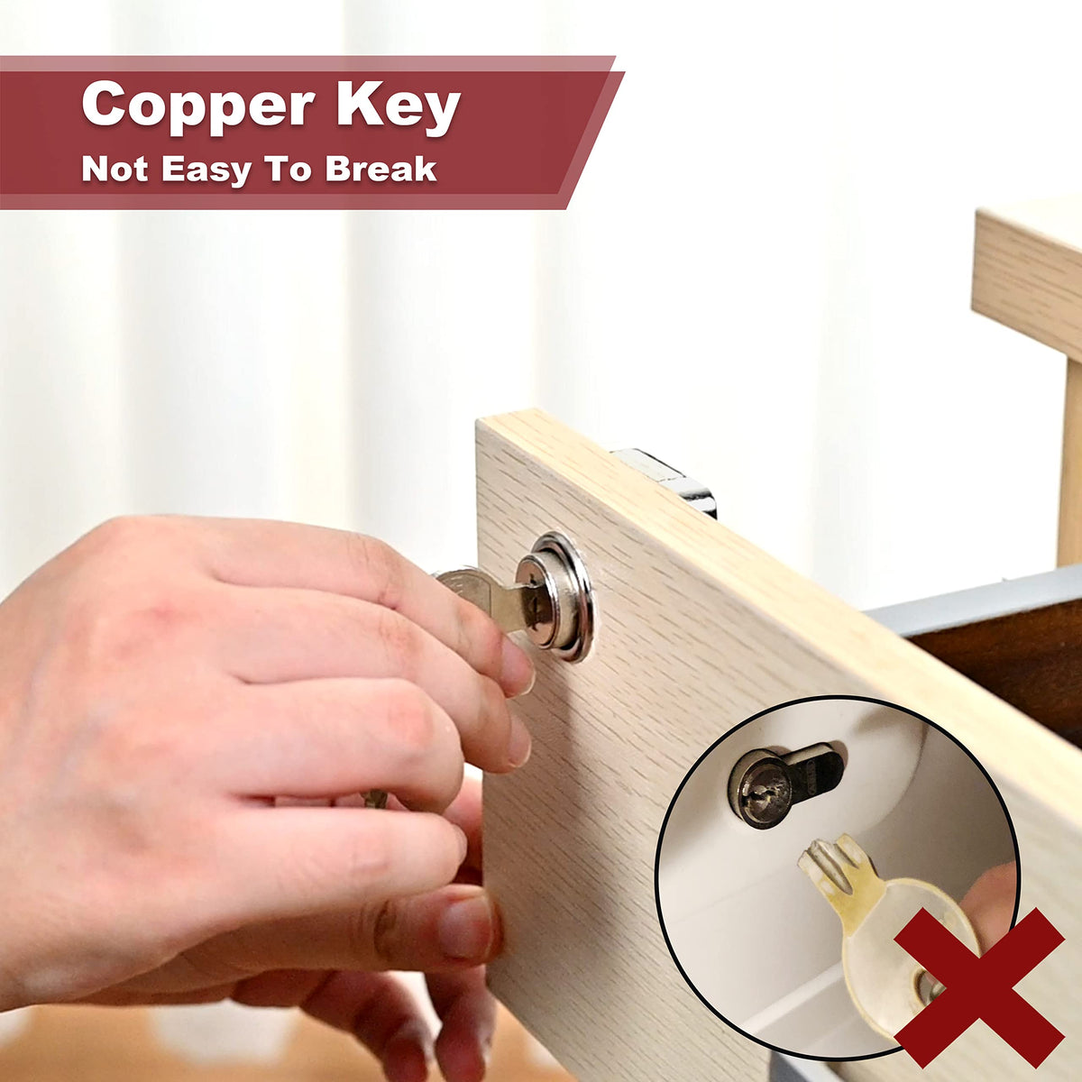 Q: Can I use these cabinet locks on different types of furniture?A: Yes, these cabinet locks come with two types of locking plates, making them suitable for universal cabinet or desk drawer installations. Depending on the distance from the center of the hole to the top, you can choose the appropriate locking plate.
