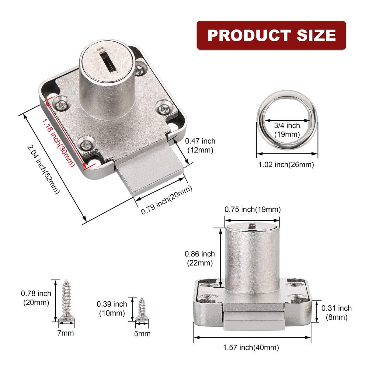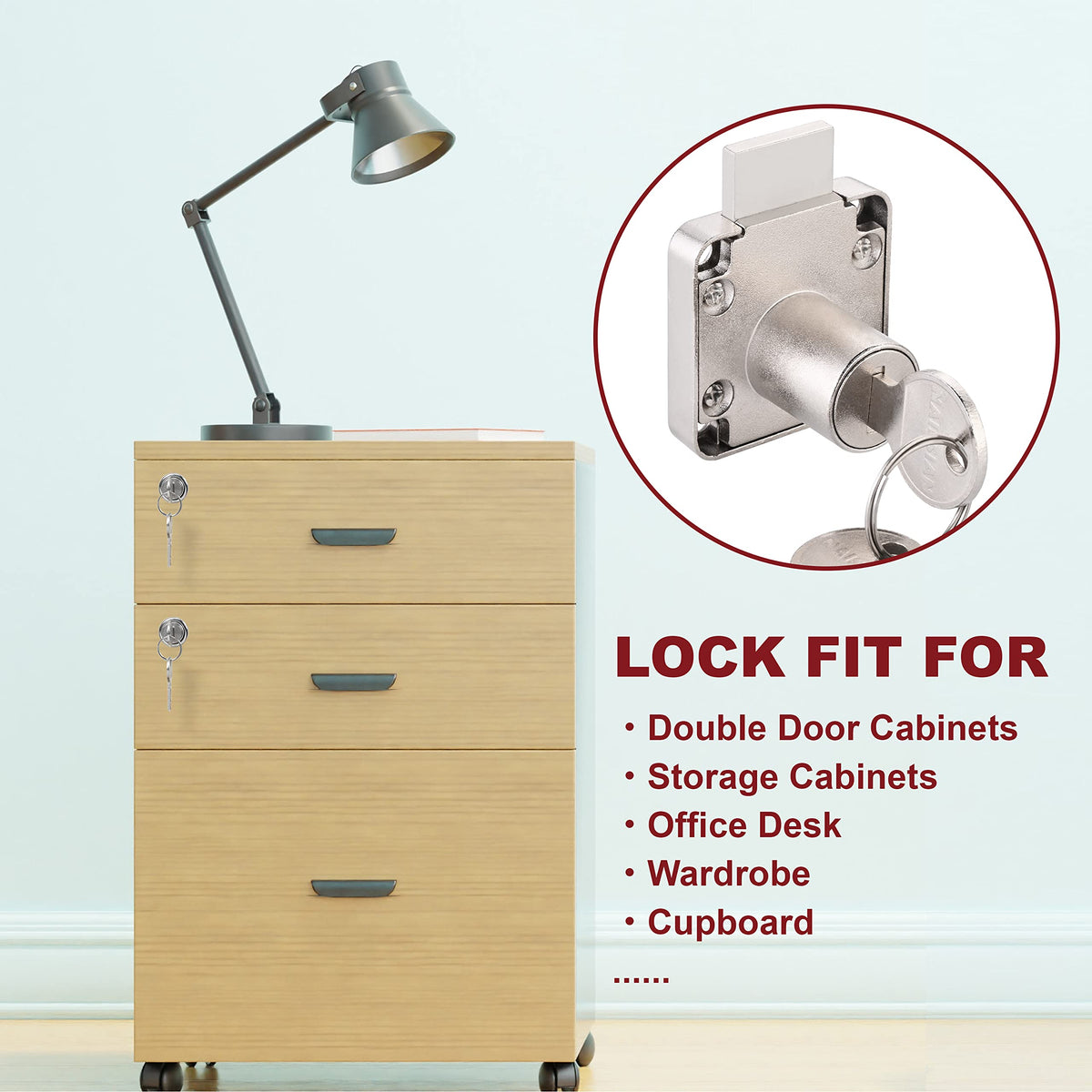 Naissian Cabinet Locks With Keys, Home Desk Lock For Drawer 7/8' Office Furniture Drawer Lock Latch, Pack Of 2 Locks With 4 Keys Alike, Nickel