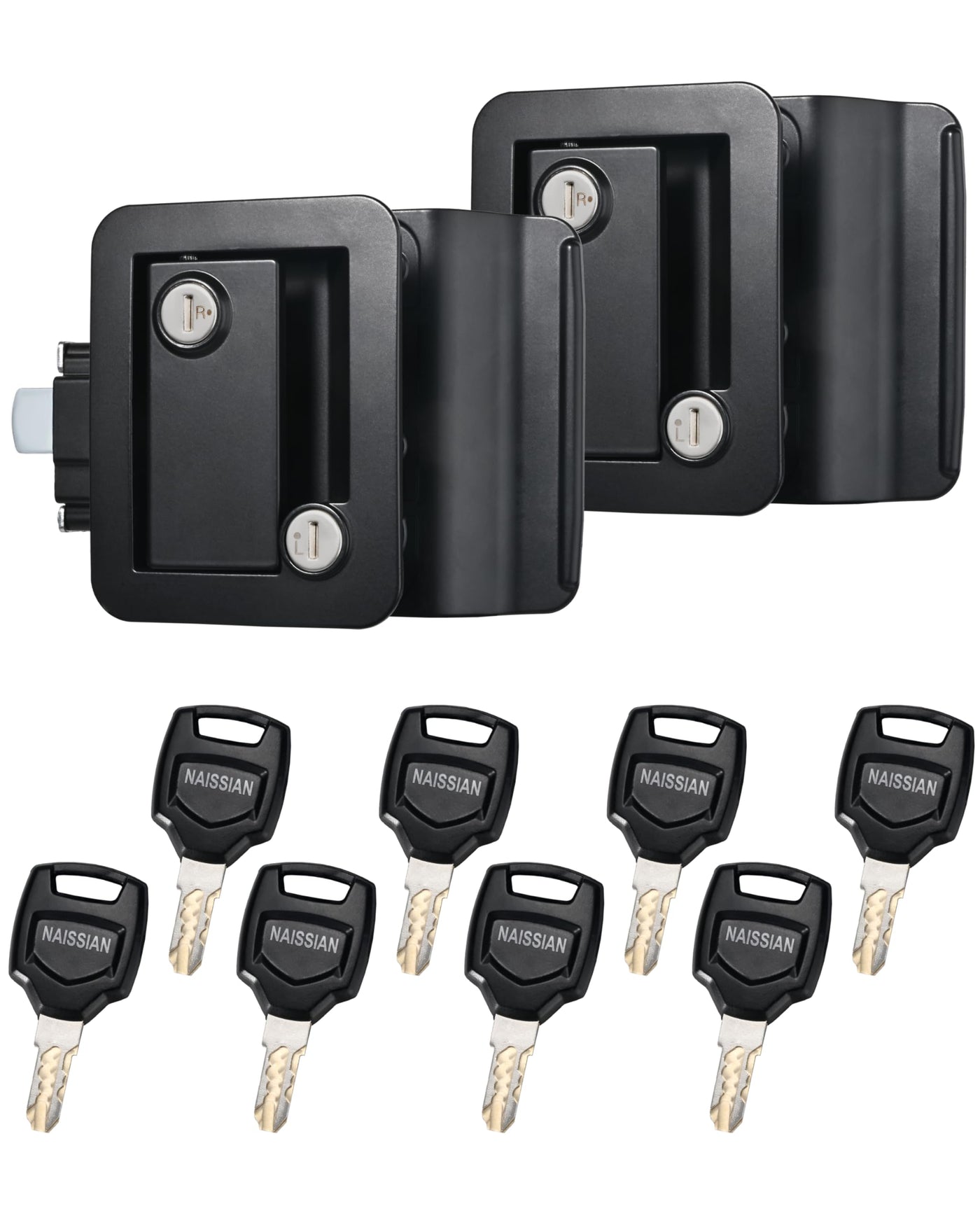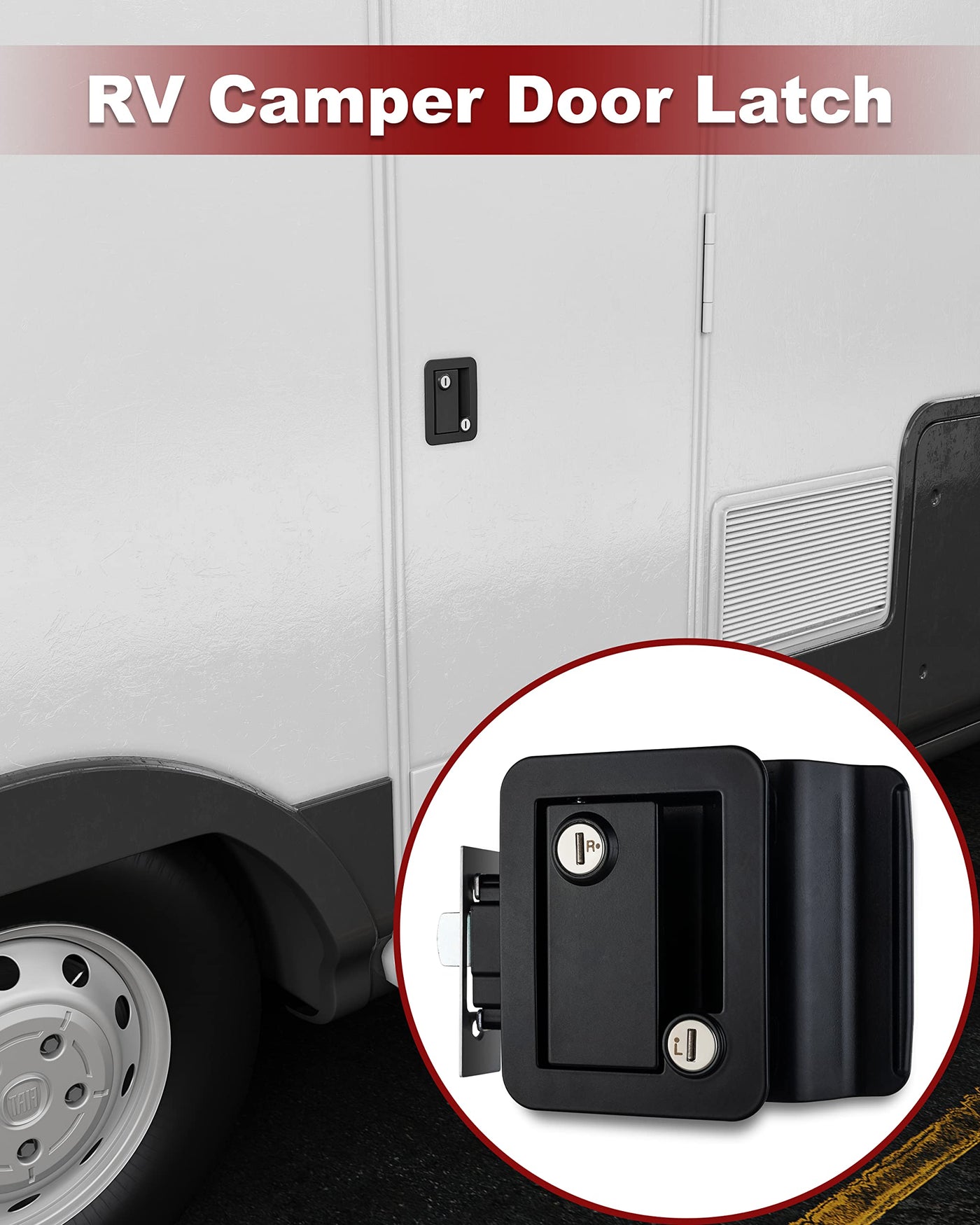 Naissian Rv Camper Door Lock Latch Deadbolt Lock Entry Side Door Lock With Handle For Travel Trailer 5Th Wheel Universal Security Rv Compartment Side Door Latch, Black, Pack Of 2 Lock+ 8 Keys Alike