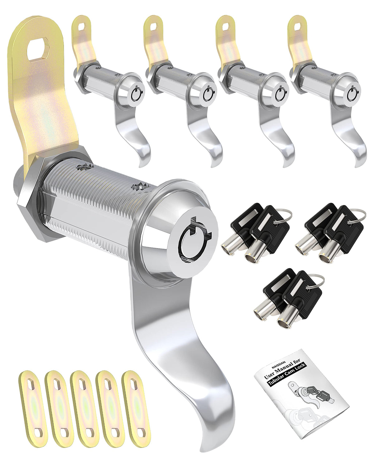 Naissian Rv Locks For Storage Door 1 1/2 Inch, Camper Storage Locks For Travel Trailer Compartment Cabinet Drawer With Keys 1 1/2', Pack Of 5 Locks With 6 Keyed Alike With Manual