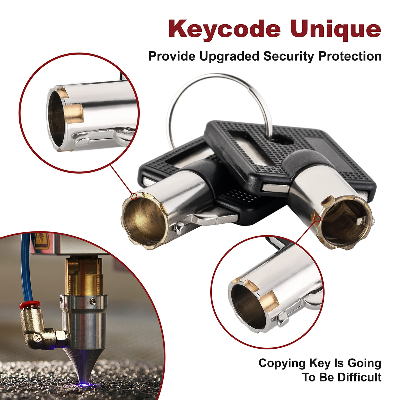 Q: What makes these locks more secure than traditional locks?A: Naissian camper locks feature keys made using CNC Laser Engraving with a unique keycode design, providing over 3000 different arrangements. This significantly reduces the chances of someone else having the same key, enhancing the security of your belongings.