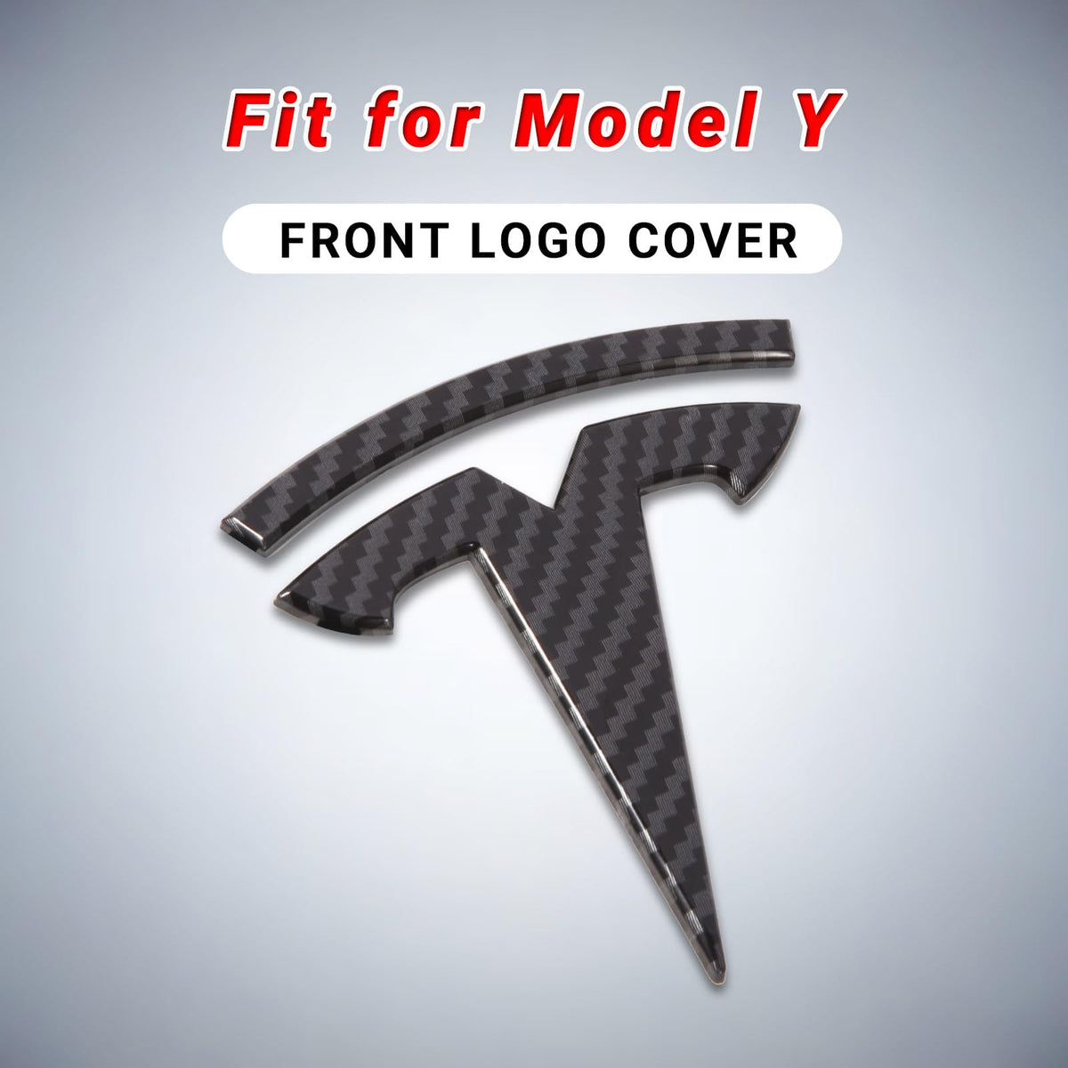 Nanaholy Model Y Accessories For Tesla 2024 2023 2022 2021 2020 Emblem Sticker 2Pcs/Set Logo Decal (Black- Carbon Fiber Pattern)