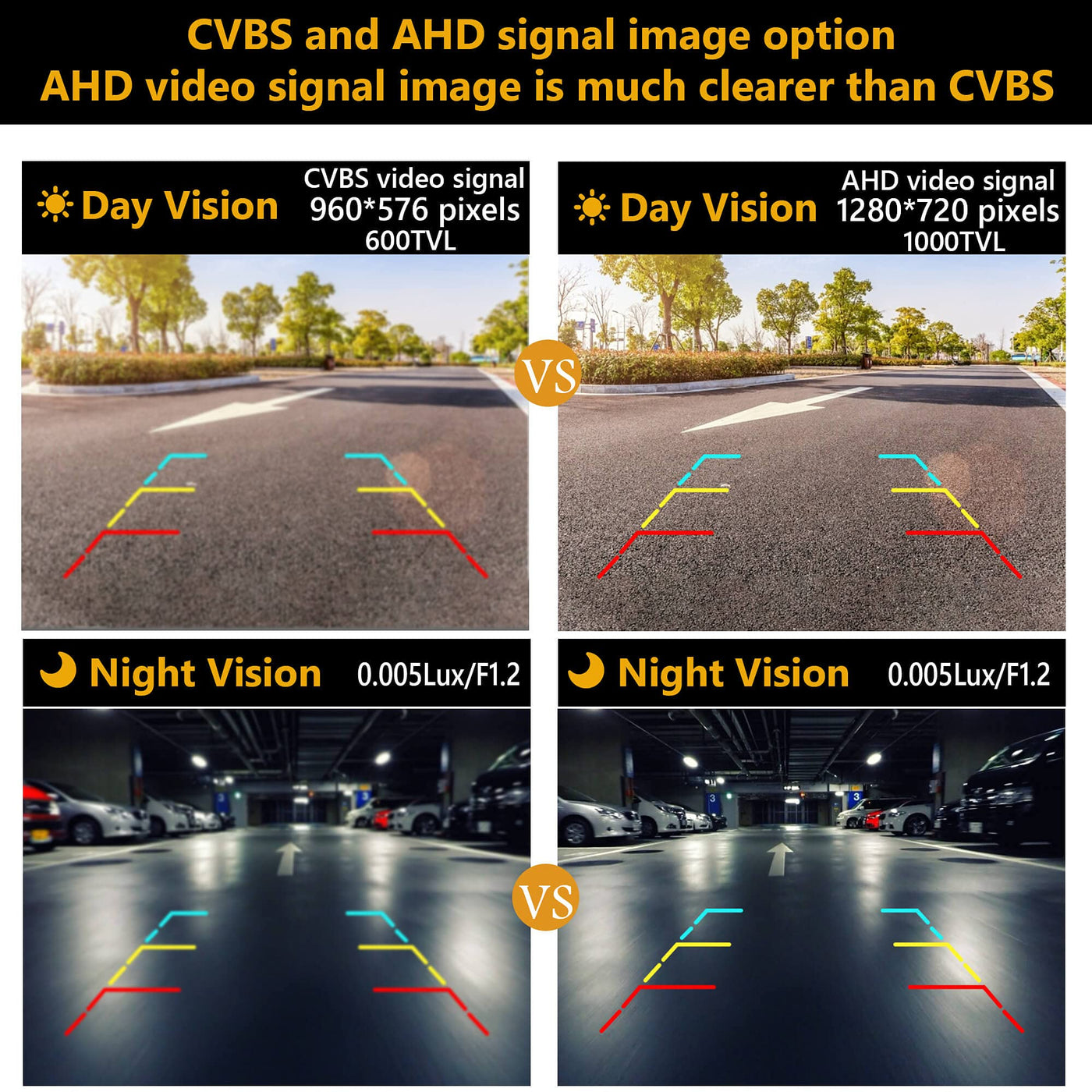 Q: What are the video signal output options for this backup camera?A: This backup camera supports three types of video signal outputs: CVBS, AHD, and TVI, allowing for flexibility based on your stereo system requirements.