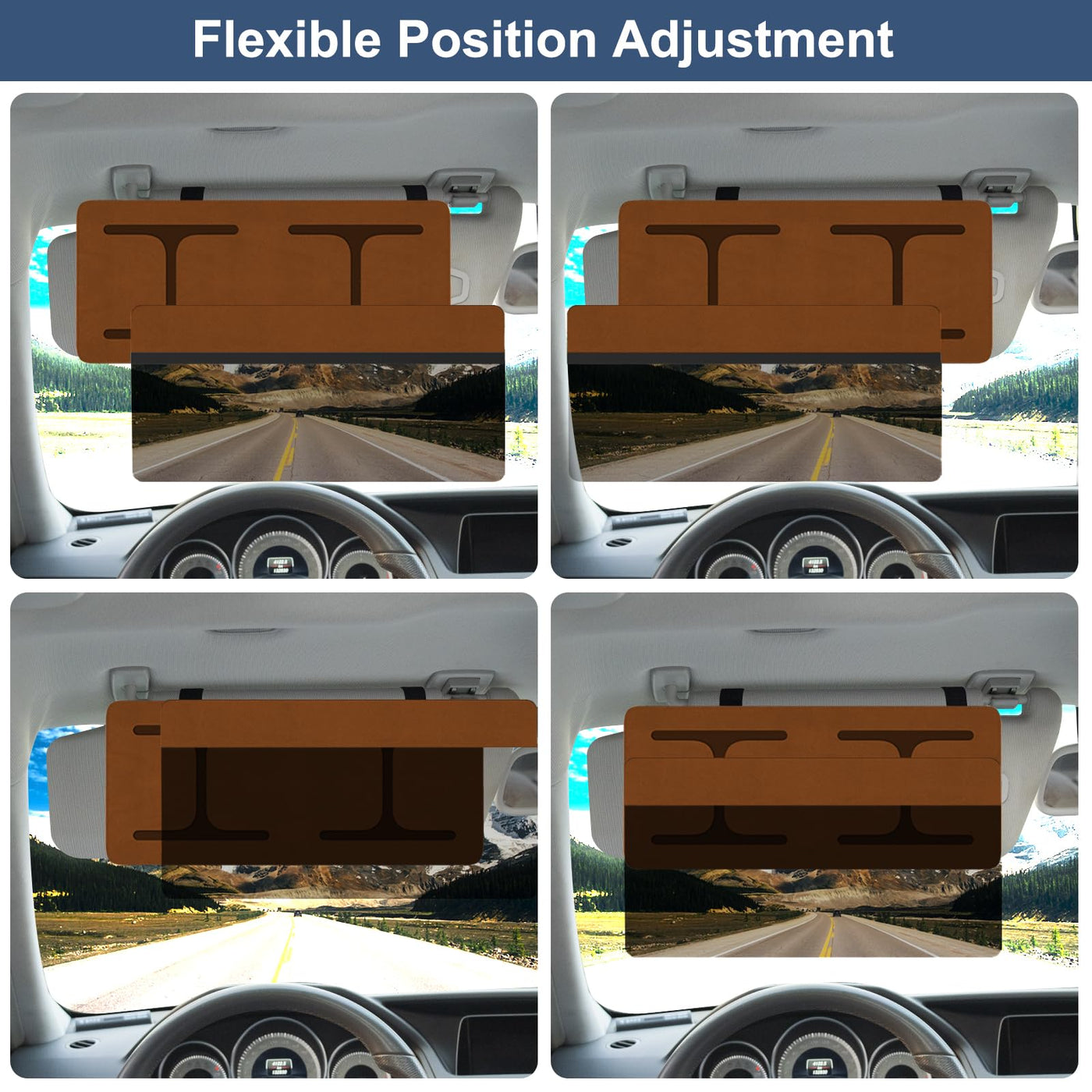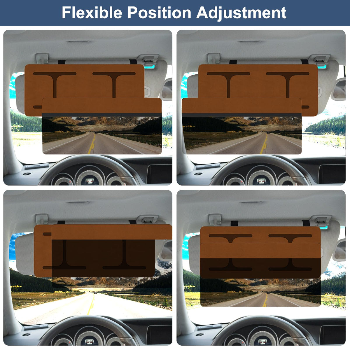 NAZZO Car Visor Extender Polarized, Sun Visor Extender for Car Attachment Sun Blocker, Anti-Glare Removable PC Lens to Expand Sunshade for Safe Driving, Brown Dear car owner, have you ever been bothered by the sun shining directly into your eyes while driving? Tired of being blinded by the sun while driving? The NAZZO car sunshade extender can help you solve this problem. This car sunshade comes with a sunshade lens that can extend the coverage of your car's original sun visor, providing a larger shading area for a more comfortable driving experience. The sunshade lens is made of high-quality polarizing material that effectively reduces glare, blocks strong sunlight and UV rays, and ensures a clear and safe driving view. Installation is easy, simply place it over your car's original sun visor and secure it with two straps. In addition, the sunshade lens uses a magnetic adsorption design, allowing you to adjust the position of the lens to better fit your needs. With our Car Sun Visor Extension with Polarized Lens, you can enjoy a safer and more comfortable driving experience, no matter where your travels take you. The sunshade is suitable for various car models and is very practical. If you are looking for a car sunshade that can bring you a more comfortable driving experience, the NAZZO car sunshade will be your best choice!