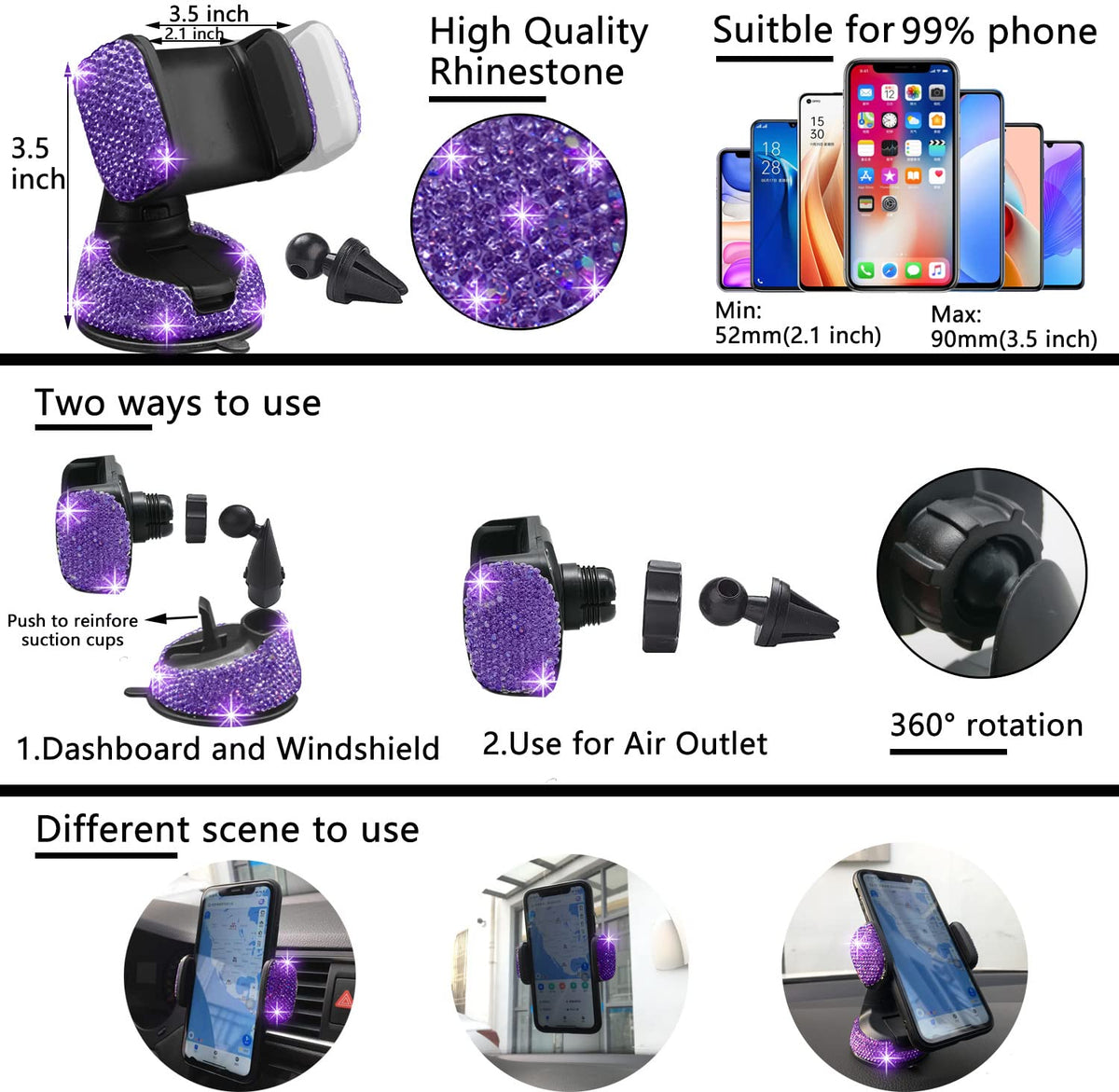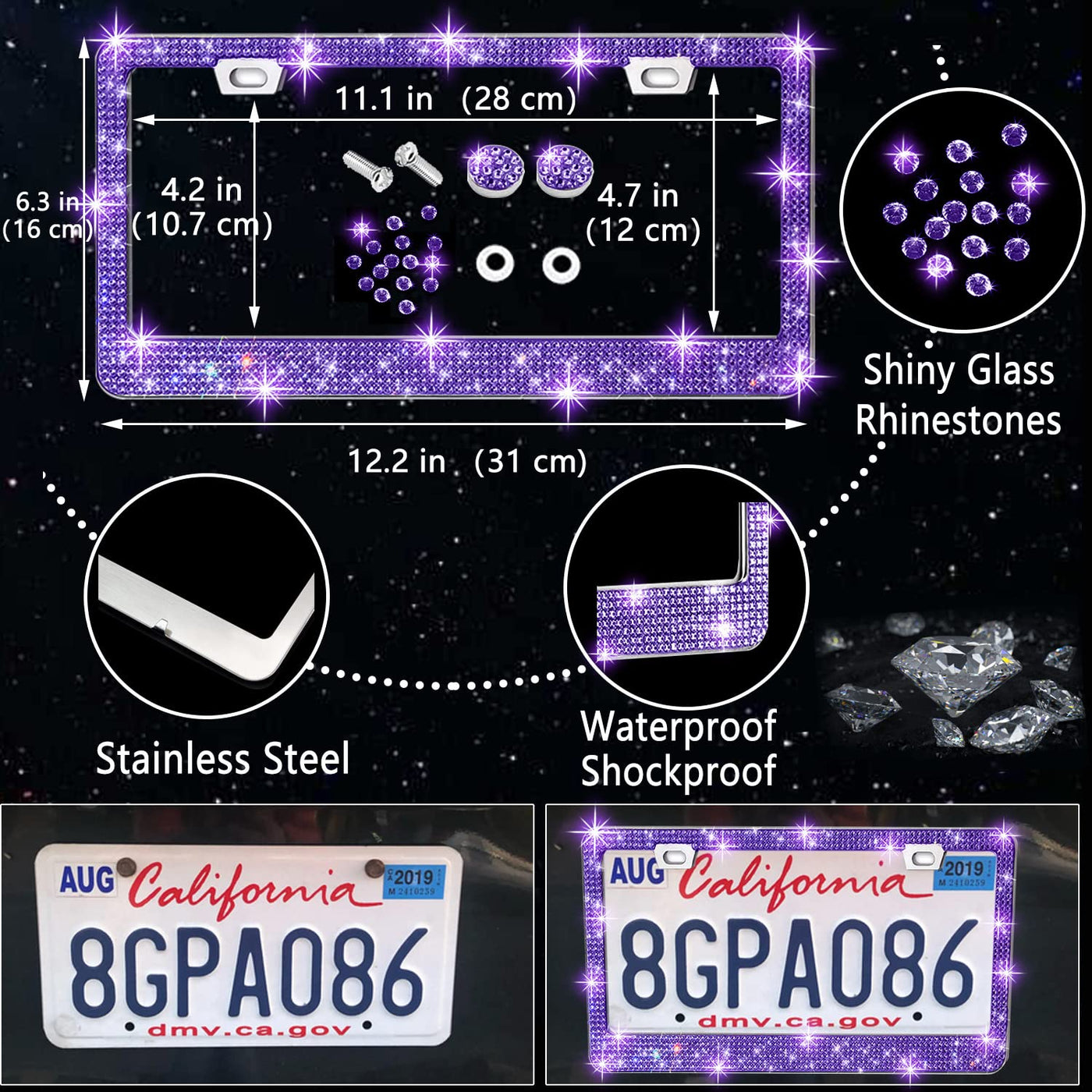 Nbtepem 27 Pcs Purple Violet Bling Car Accessories Set For Women, Bling Steering Wheel Covers Universal Fit 15 Inch, Bling Licen