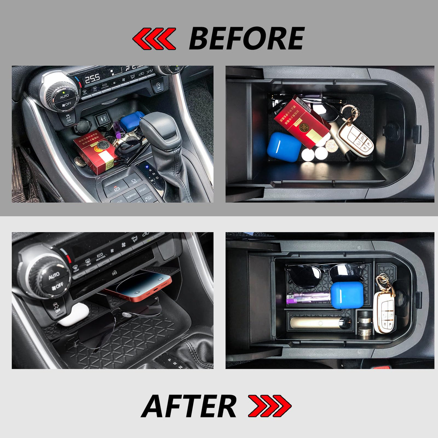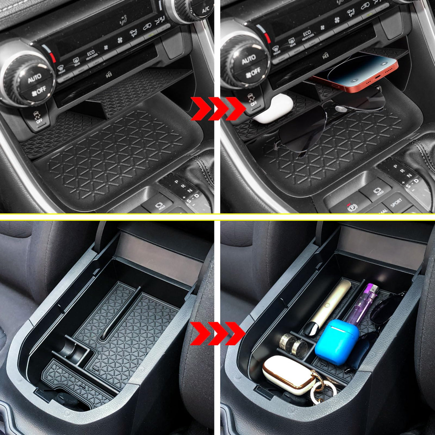 Neepiar 2Pcs Center Console Organizer Tray And Armrest Storage Box Compatible With Toyota Rav4 2025 2024 2023 2022 2021 2020 2019 Insert Secondary Storage Box Accessories