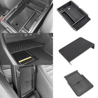 Q: How does the armrest storage box improve organization in my car?A: The armrest storage box splits the armrest into two layers, allowing for better access to items and utilizing previously unused space to store valuables securely, keeping your car neat and clutter-free.