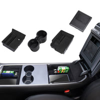 Neepiar 4PCS Center Console Organizer Compatible with 2023 2022 2021 Tesla Model 3 2021-2024 Model Y Armrest Hidden Cubby Drawer Storage Box and Cup Holder Flocked ABS Material Interior Accessories