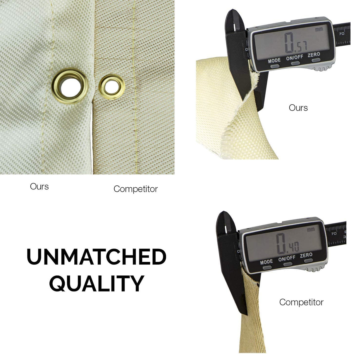 Q: What makes the Neiko welding blanket different from other fire blankets?A: The Neiko welding blanket is made from a thick 19.8-ounce fiberglass material with a 30 x 30 weave design for extreme durability, reinforced with brass grommets for easy hanging, making it superior for long-term repeated use.