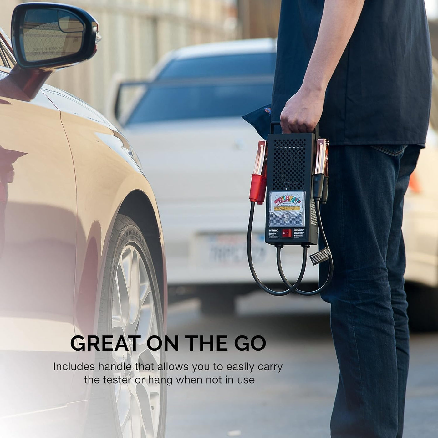 Q: What safety features does this battery tester have?A: The NEIKO 40510A features an anti-sparking internal switchgear and a protection-encased analog voltage meter display, ensuring safe and accurate testing while preventing accidental sparks.