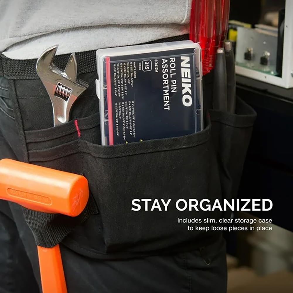NEIKO 50412A Roll Pin Assortment Set with Storage Case | 315 Pieces | SAE | Slotted Spring Steel | Black Dowel Tension Roll Pin